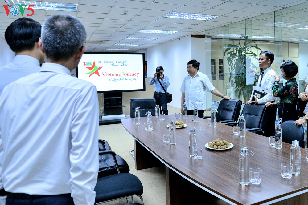 | Trong khuôn khổ chuyến thăm, đoàn đại biểu cũng tới thăm kênh Truyền hình Du lịch Việt Nam Journey và kênh VOV Giao Thông. |