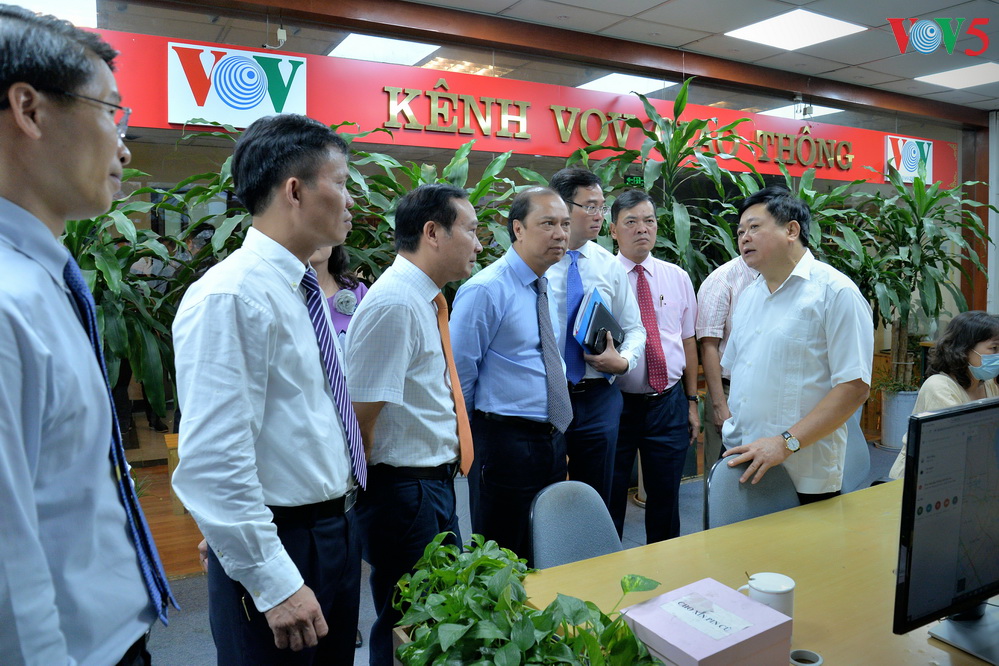 | Đoàn đại biểu tại phòng làm việc của kênh VOV Giao thông./. |