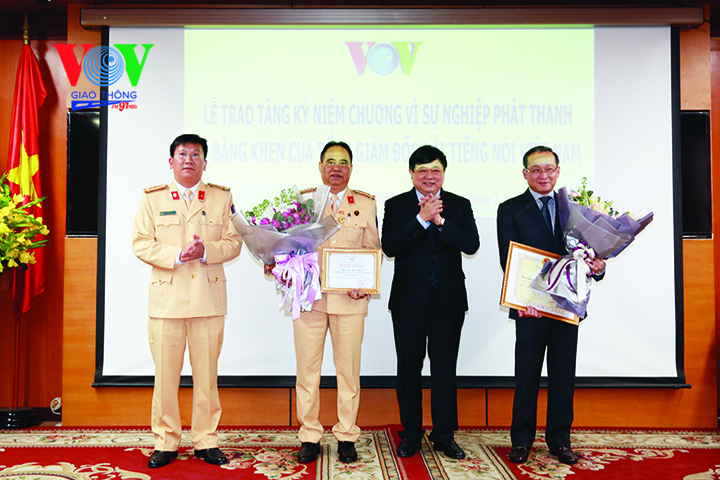Tổng giám đốc Đài TNVN Nguyễn Thế Kỷ trao kỷ niệm chương cho các cá nhân, tập thể đã đóng góp cho sự phát triển của Kênh VOV Giao thông - tháng 12/2017