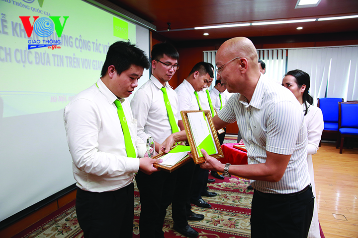 Ông Trang Công Tiến - Giám đốc Kênh VOV Giao thông trao phần thưởng cho các tài xế tích cực cộng tác đưa tin trên Kênh VOV Giao thông - tháng 12/2017