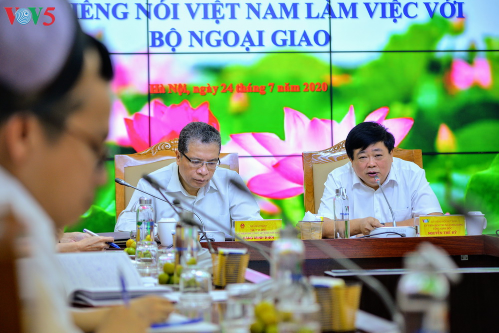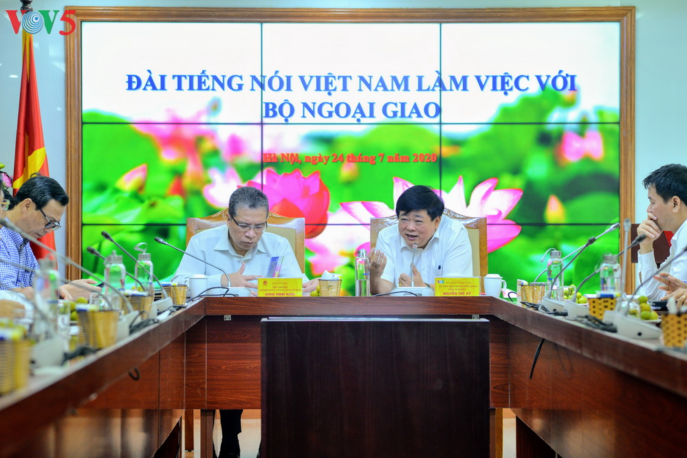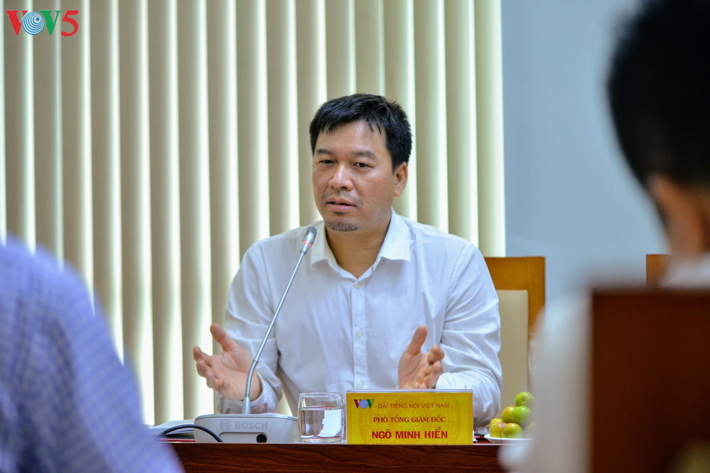 Theo Tổng Giám đốc Nguyễn Thế Kỷ (bìa phải), VOV hiện là một cơ quan báo chí đa loại hình, đa nền tảng, lại có nhiều cơ quan thường trú ở nước ngoài và các chương trình phát thanh đa ngôn ngữ, nên có nhiều thuận lợi trong công tác tuyên truyền này.