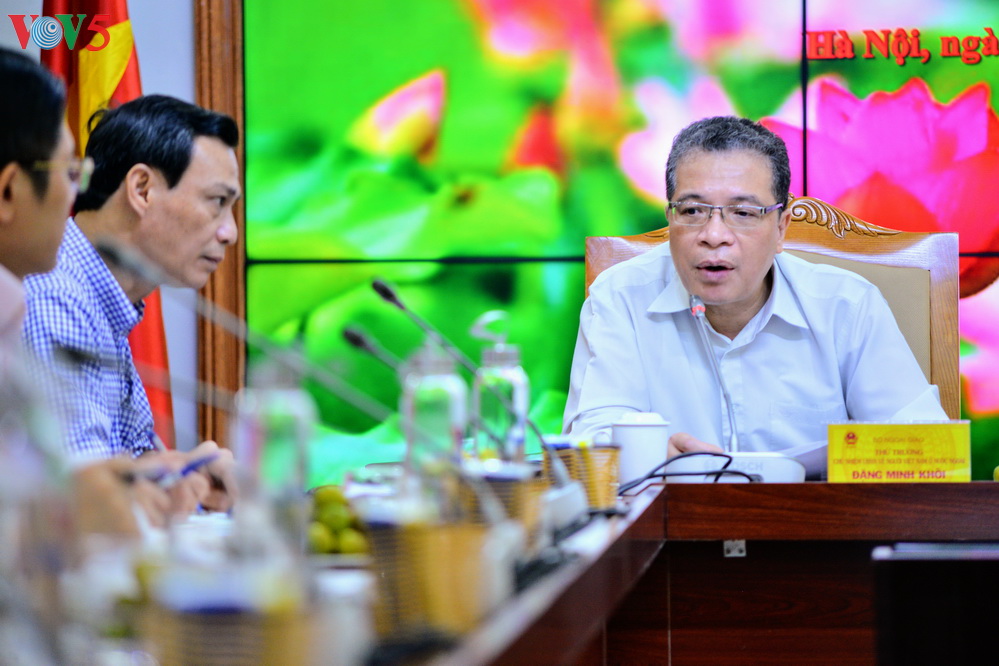 Thứ trưởng Đặng Minh Khôi đã cập nhật với đoàn cán bộ VOV về tình hình cộng đồng người Việt ở nước ngoài và nêu ra các thách thức, nhiệm vụ mới trong công tác tuyên truyền với cộng đồng này.