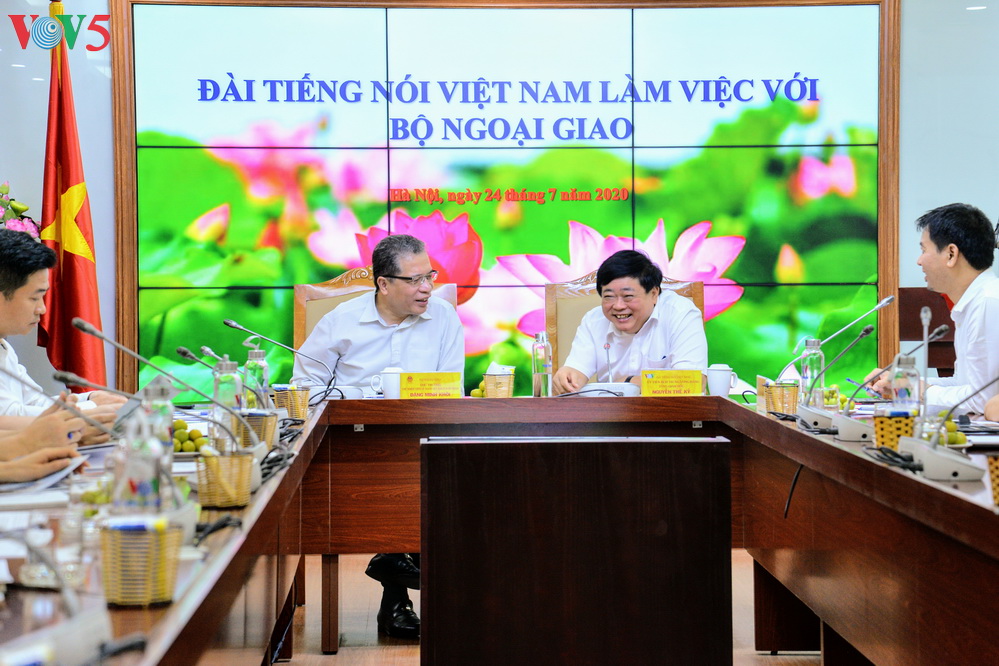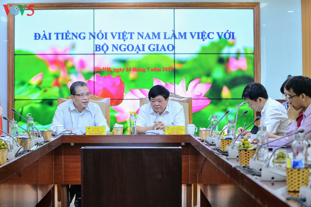 Sáng 24/7, Đoàn lãnh đạo Bộ Ngoại giao do Thứ trưởng Bộ Ngoại giao Đặng Minh Khôi dẫn đầu đã tới thăm và làm việc với Đài Tiếng nói Việt Nam (VOV) về công tác thông tin tuyên truyền với người Việt Nam ở nước ngoài và việc Thực hiện Chỉ thị 45-CT/TW thời gian qua, cũng như bàn phương hướng, biện pháp phối hợp trong thời gian tới.