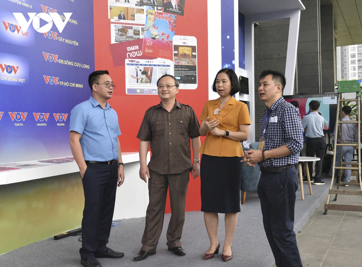 Chiều 12/4, Uỷ viên Ban Chấp hành Trung ương Đảng, Tổng Giám đốc VOV Đỗ Tiến Sỹ, Phó Tổng Giám đốc VOV Phạm Mạnh Hùng cùng lãnh đạo các đơn vị của VOV đã tới tham quan, kiểm tra công tác chuẩn bị tại gian trưng bày của Đài tại Hội báo toàn quốc 2022. |