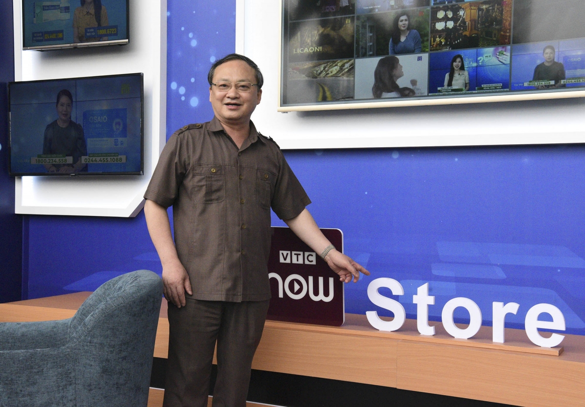 Tổng Giám đốc VOV Đỗ Tiến Sỹ tham quan gian trưng bày của Đài Truyền hình Kỹ thuật số VTC. |