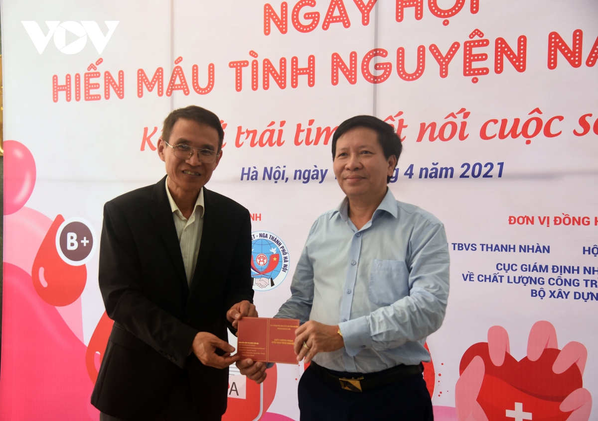 Phó Tổng Giám đốc VOV nhận giấy chứng nhận sau khi tham gia hiến máu.