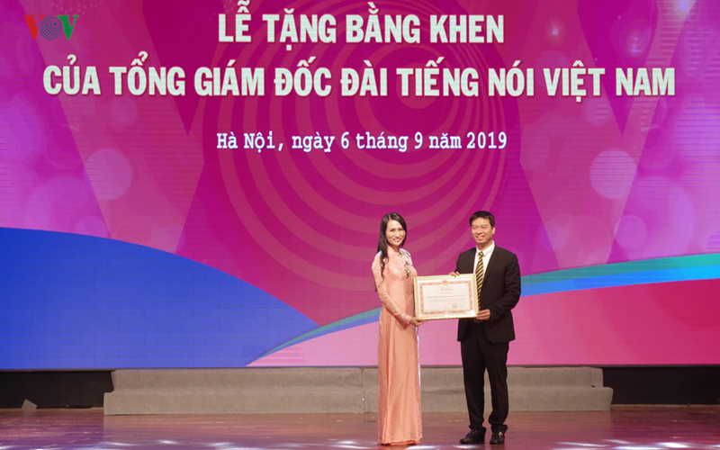 | Ông Ngô Minh Hiển, Phó Tổng Giám đốc Đài Tiếng nói Việt Nam trao bằng khen của Tổng Giám đốc VOV các tập thể, cá nhân đã có thành tích xuất sắc. |