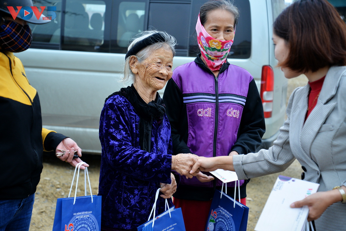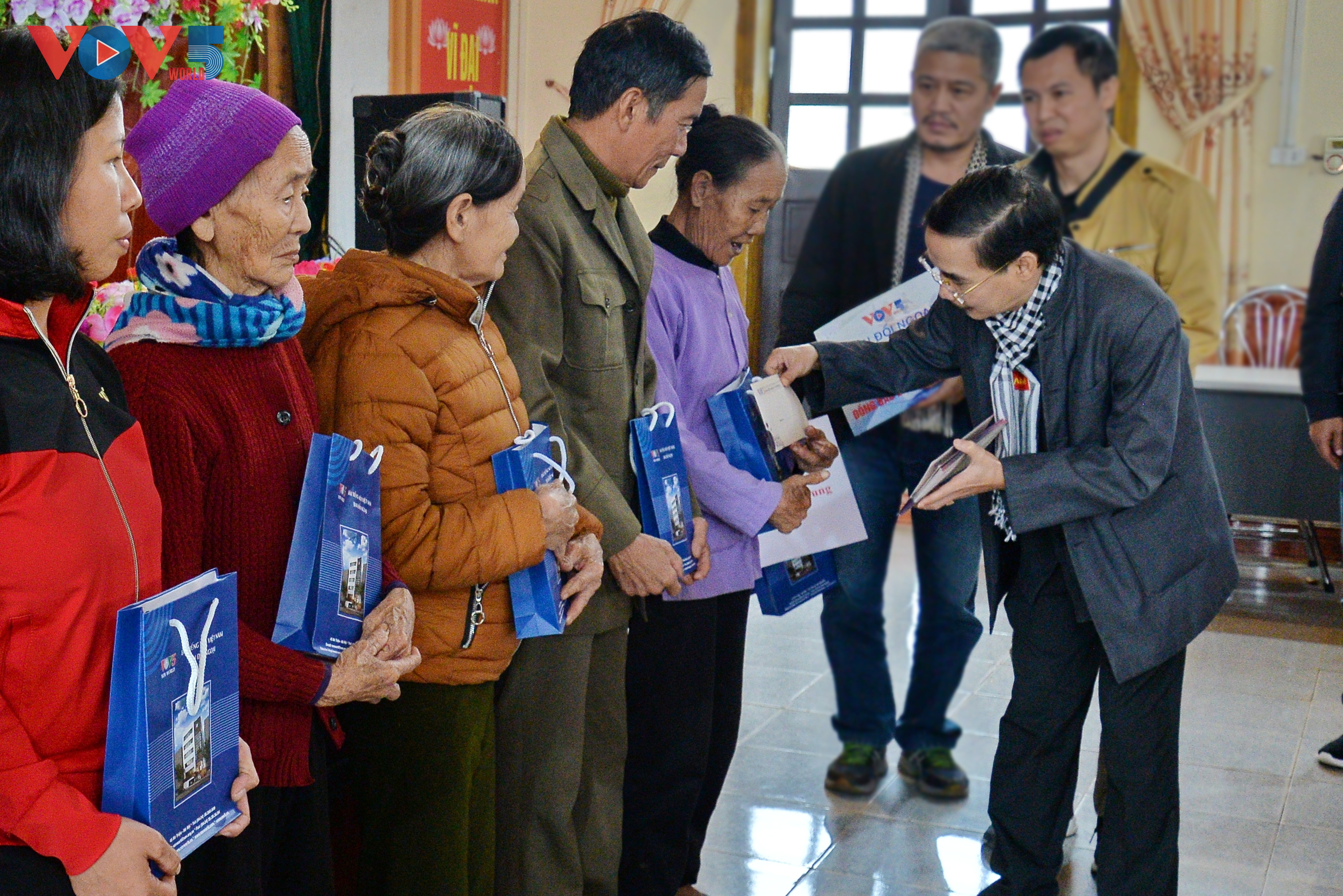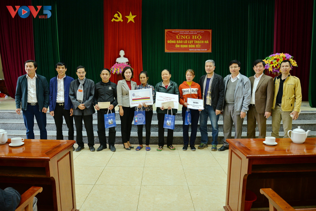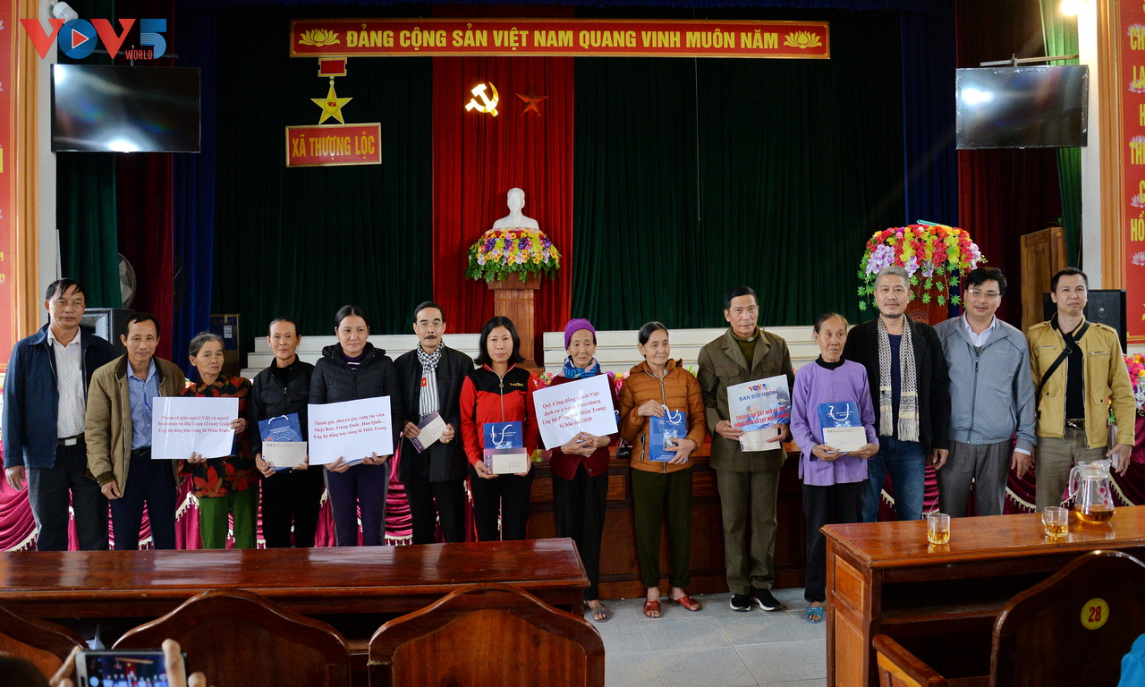 | Tiếp tục các hoạt động hỗ trợ người dân miền Trung khắc phục hậu quả mưa lũ, ngày 12-13/12, đoàn công tác Ban Đối ngoại (VOV5) - Đài TNVN, do ông Lê Quốc Hưng - Phó trưởng Ban làm trưởng đoàn, trao quà của kiều bào và các nhà tài trợ tới các hộ dân có hoàn cảnh khó khăn tại ba huyện Can Lộc, Thạch Hà, Hương Khê tỉnh Hà Tĩnh. |