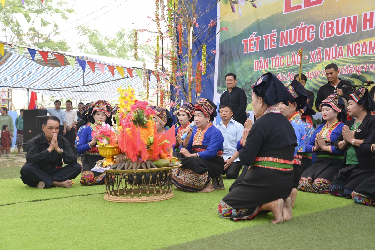 Ngay từ sáng sớm, người dân 2 bản dân tộc Lào là Na Sang 1 và Na Sang 2 của xã Núa Ngam đã đổ về nhà văn hóa để đón khách đến dự Tết Té nước. Sau 2 năm ảnh hưởng của dịch bệnh COVID-19 không thể tổ chức, năm nay đồng bào Lào ở Na Sang tổ chức tết cổ truyền Bun Huột Nặm lớn hơn, đông vui hơn. |