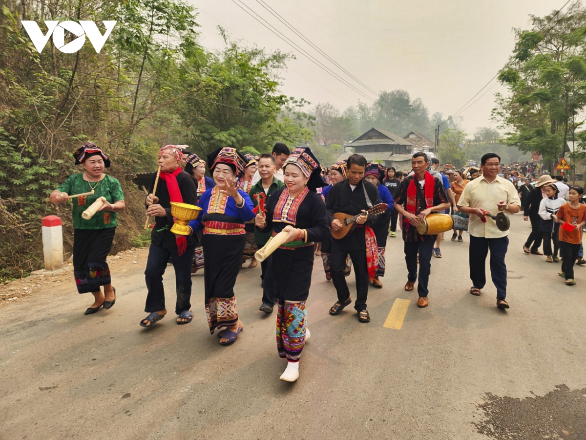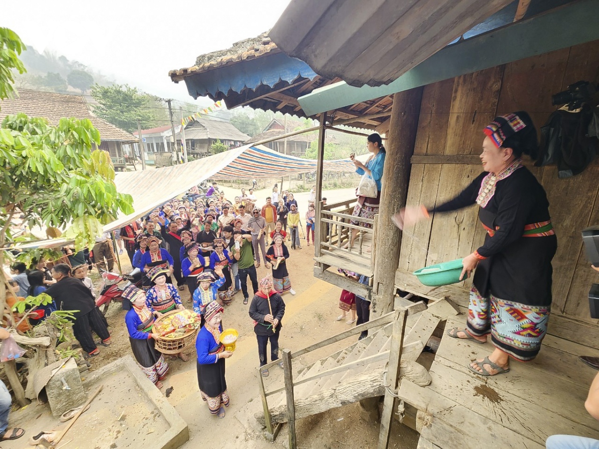 Tại đây, họ sẽ hát những bài đồng dao và chờ gia chủ ban lộc, ban nước. Chủ nhà sau khi hát đối đáp sẽ đưa lễ vật và té nước vào đoàn người trong không khí vô cùng náo nhiệt. |
