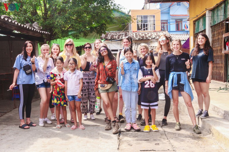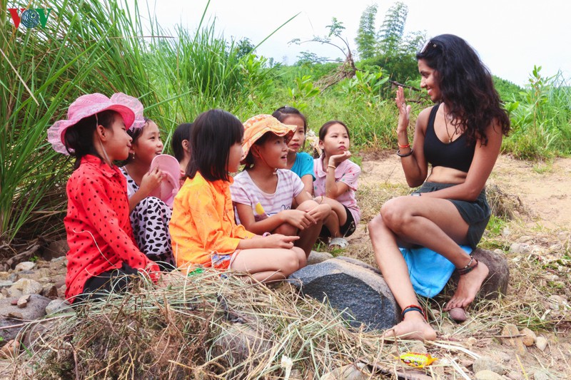 Chị Faren Rebecca Rajkumar đến từ Mỹ, hiện đang làm việc tại Trung tâm tiếng Anh Hạ Long hào hứng với việc dạy các em nhỏ dân tộc Tày phát âm tiếng Anh.