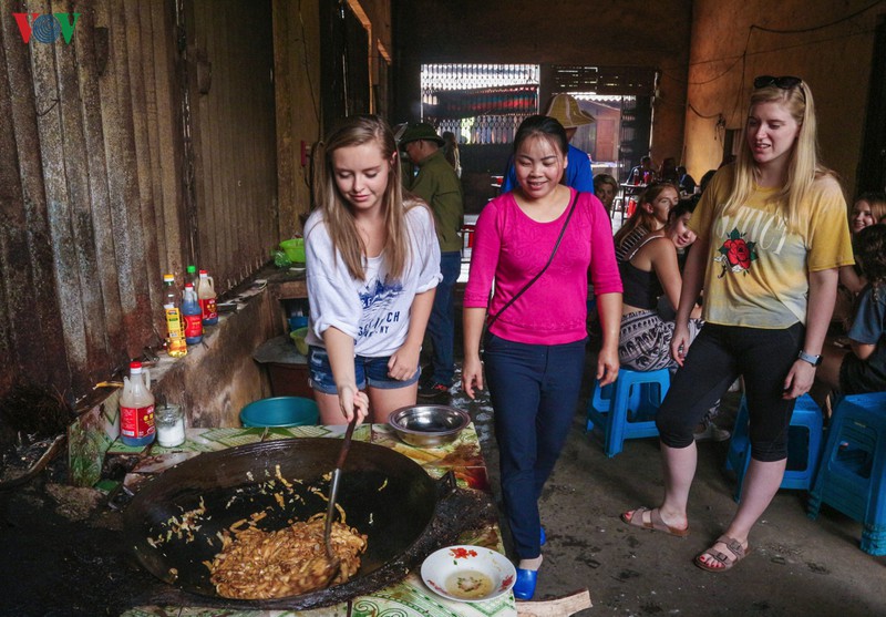 Những vị khách phương Tây trải nghiệm cách nấu món phở xào ở chợ Đồng Văn. Đây là món ăn truyền thống chỉ có ở chợ Đồng Văn, chế biến ngon và chuẩn vị nhất.