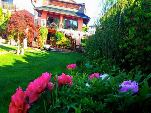 Khu vườn rộng 1.000m2 của chị Kim Cúc (Hà Nội) tại ngôi nhà ở Praha, Cộng hòa Séc đẹp lung linh bởi màu sắc của hoa lá.