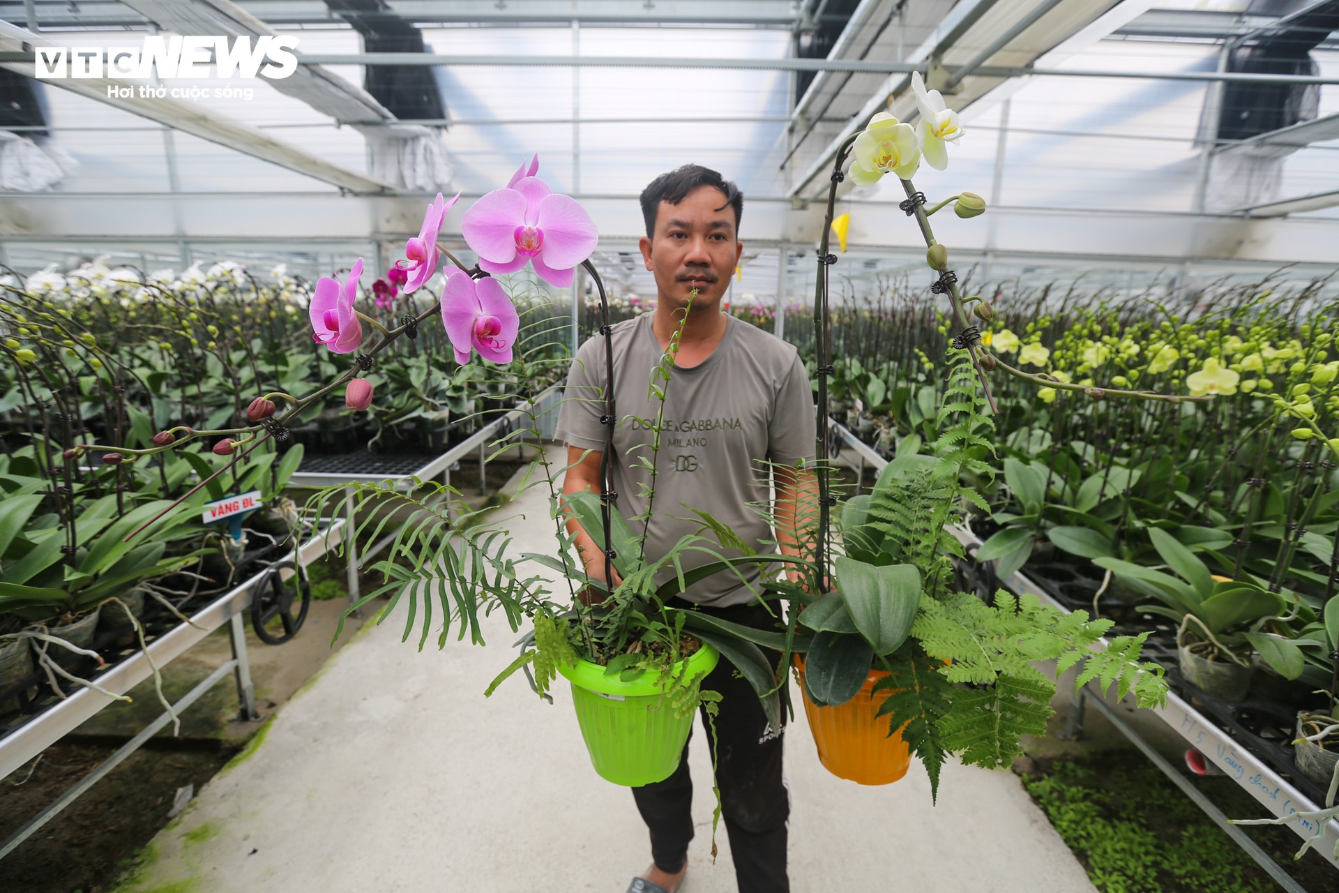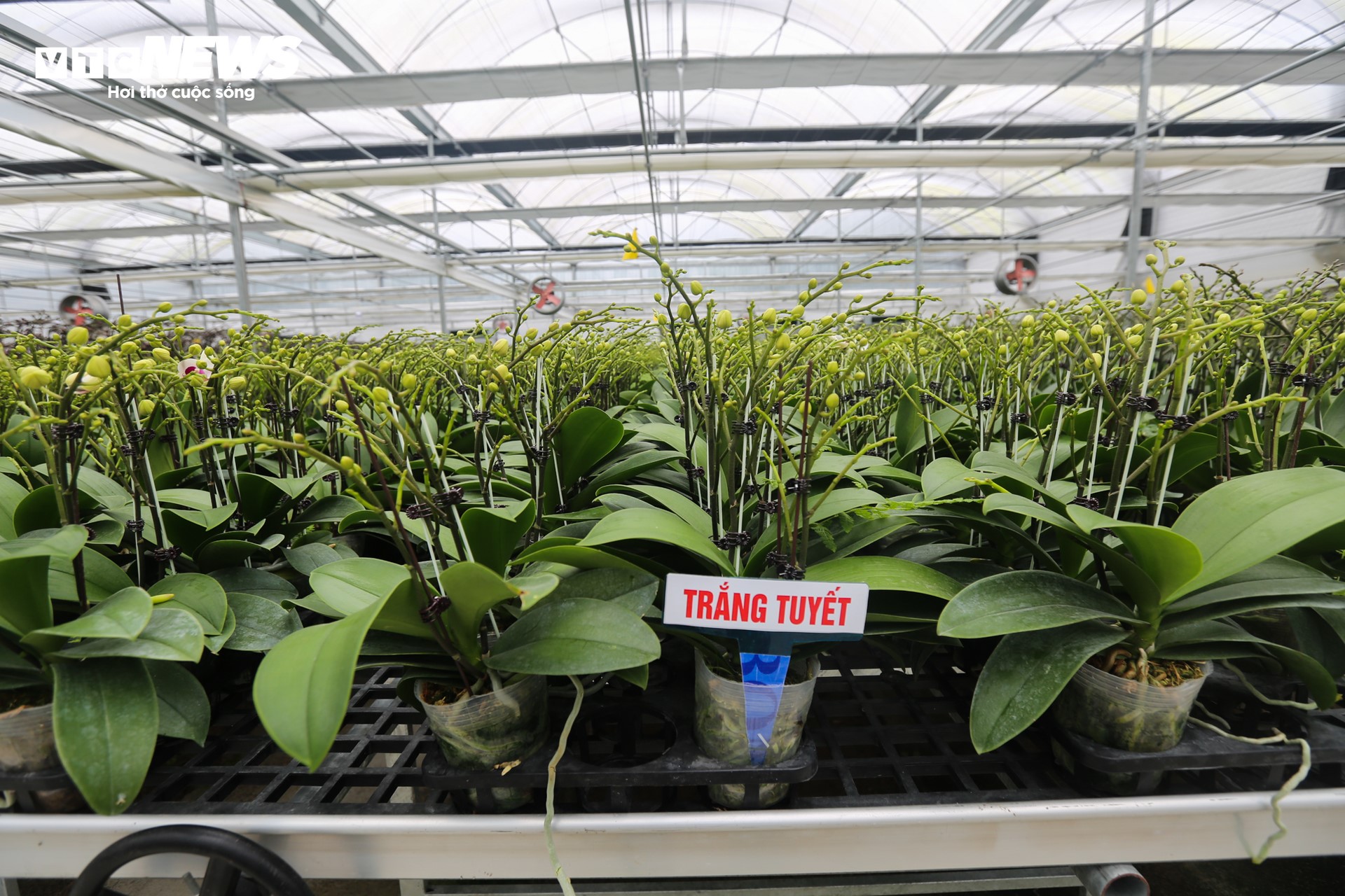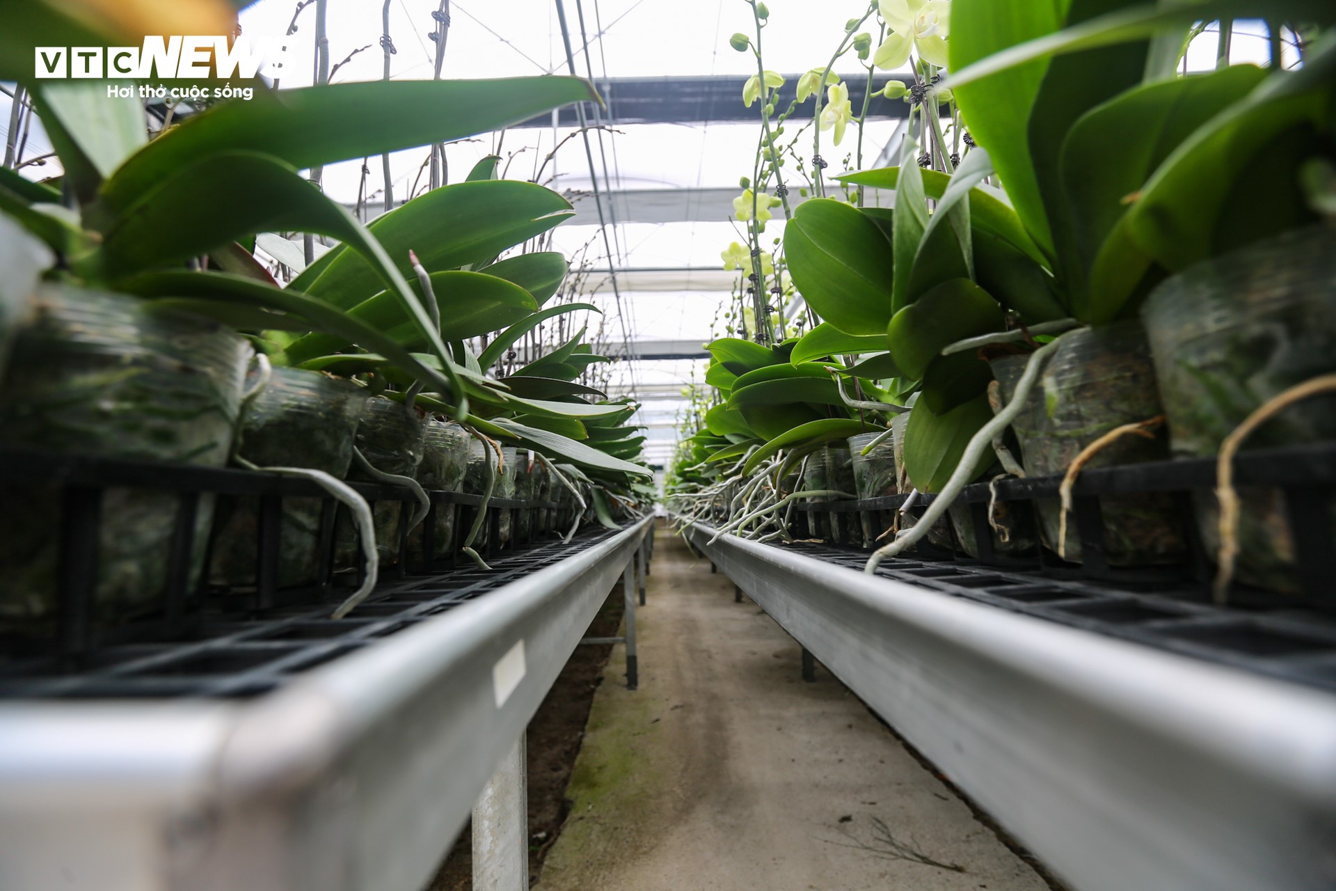 Những chậu lan xanh mơn mởn chuẩn bị cho thị trường sôi động cuối năm. |