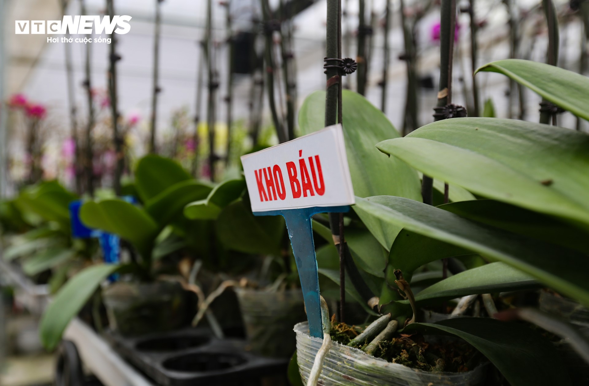 Các luống hoa được đánh theo số thứ tự và tên từng loại lan. |