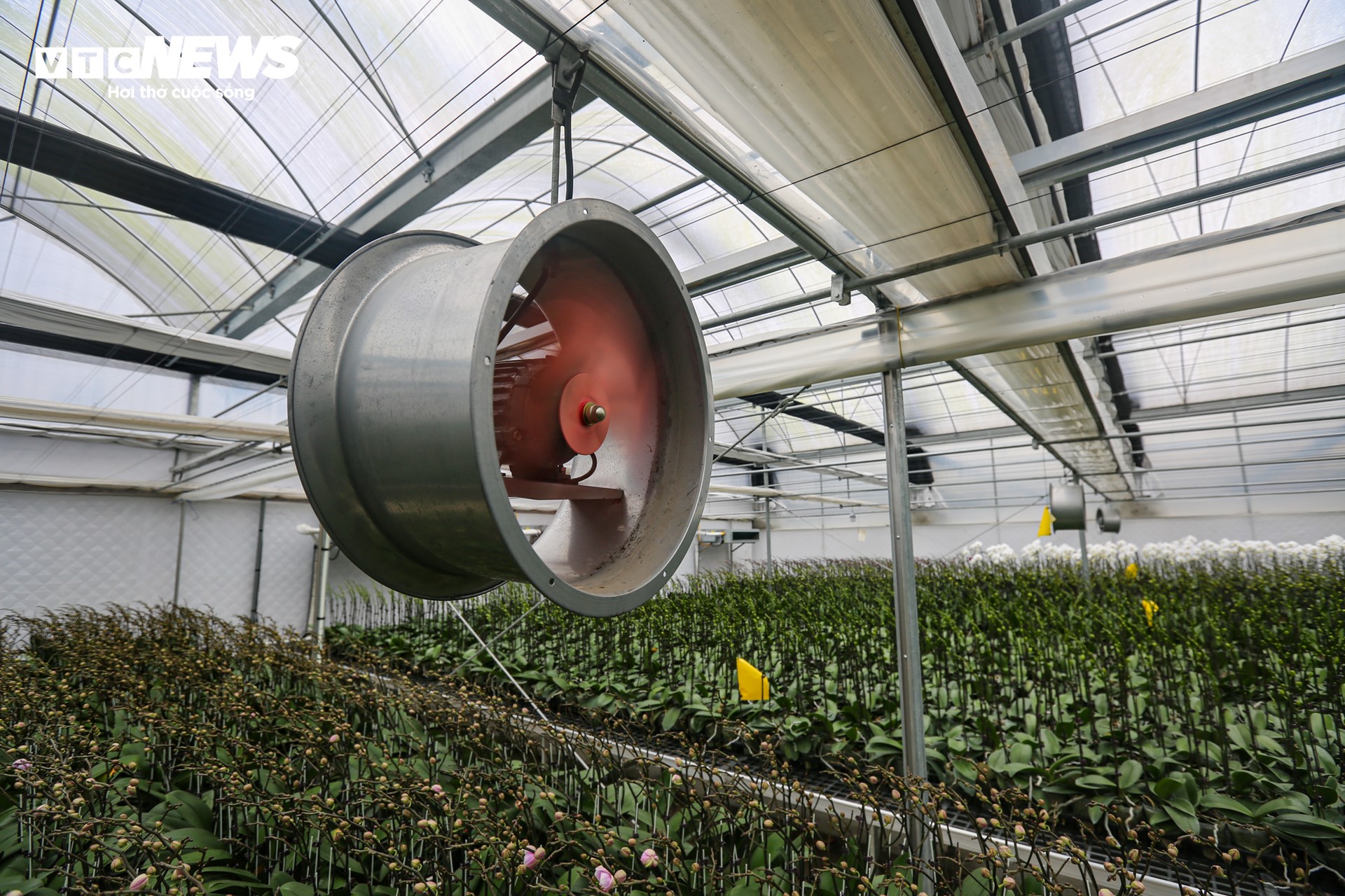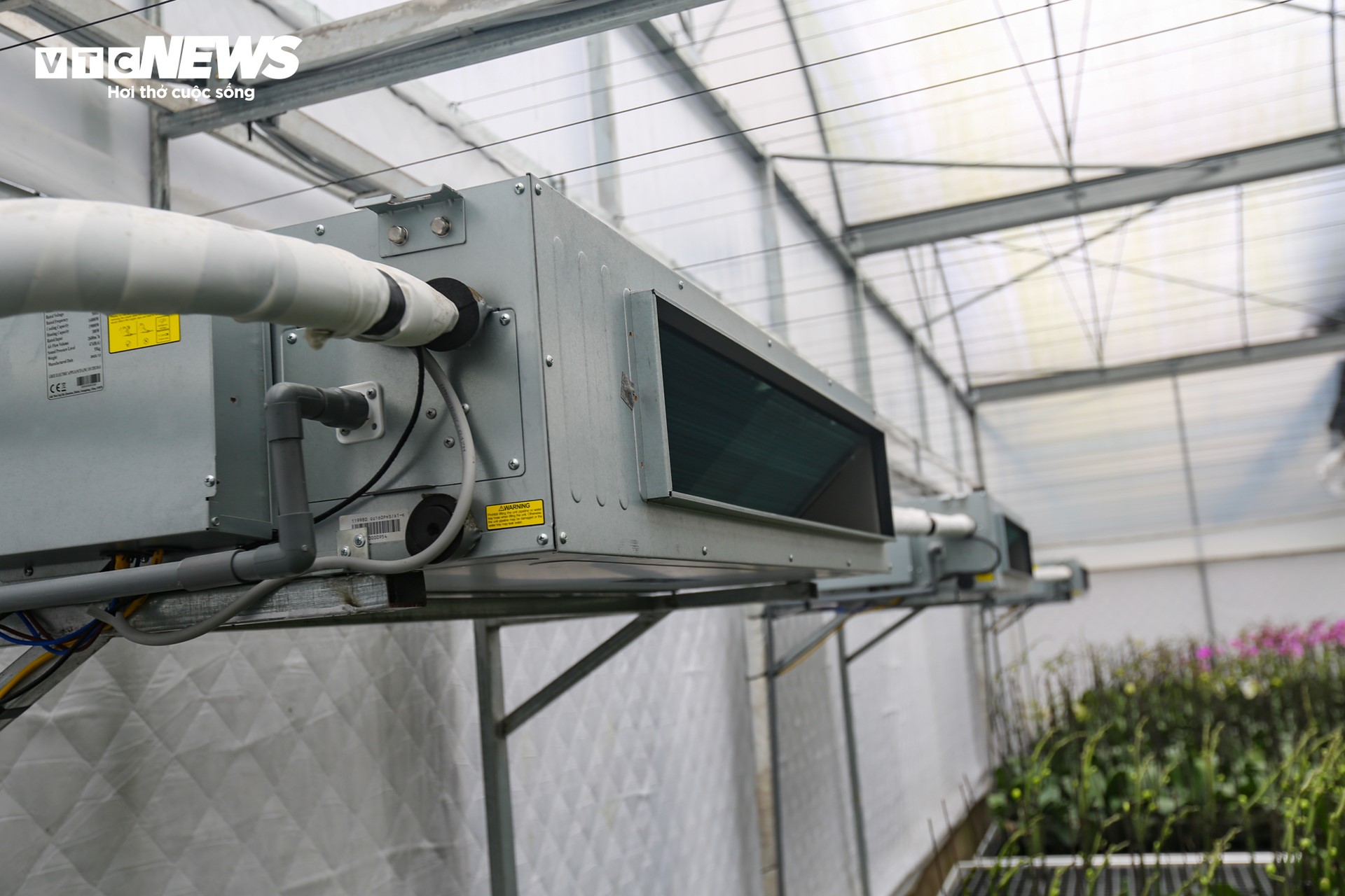 Quạt công nghiệp và điều hòa giúp điều chỉnh nhiệt độ bên trong nhà màng. |