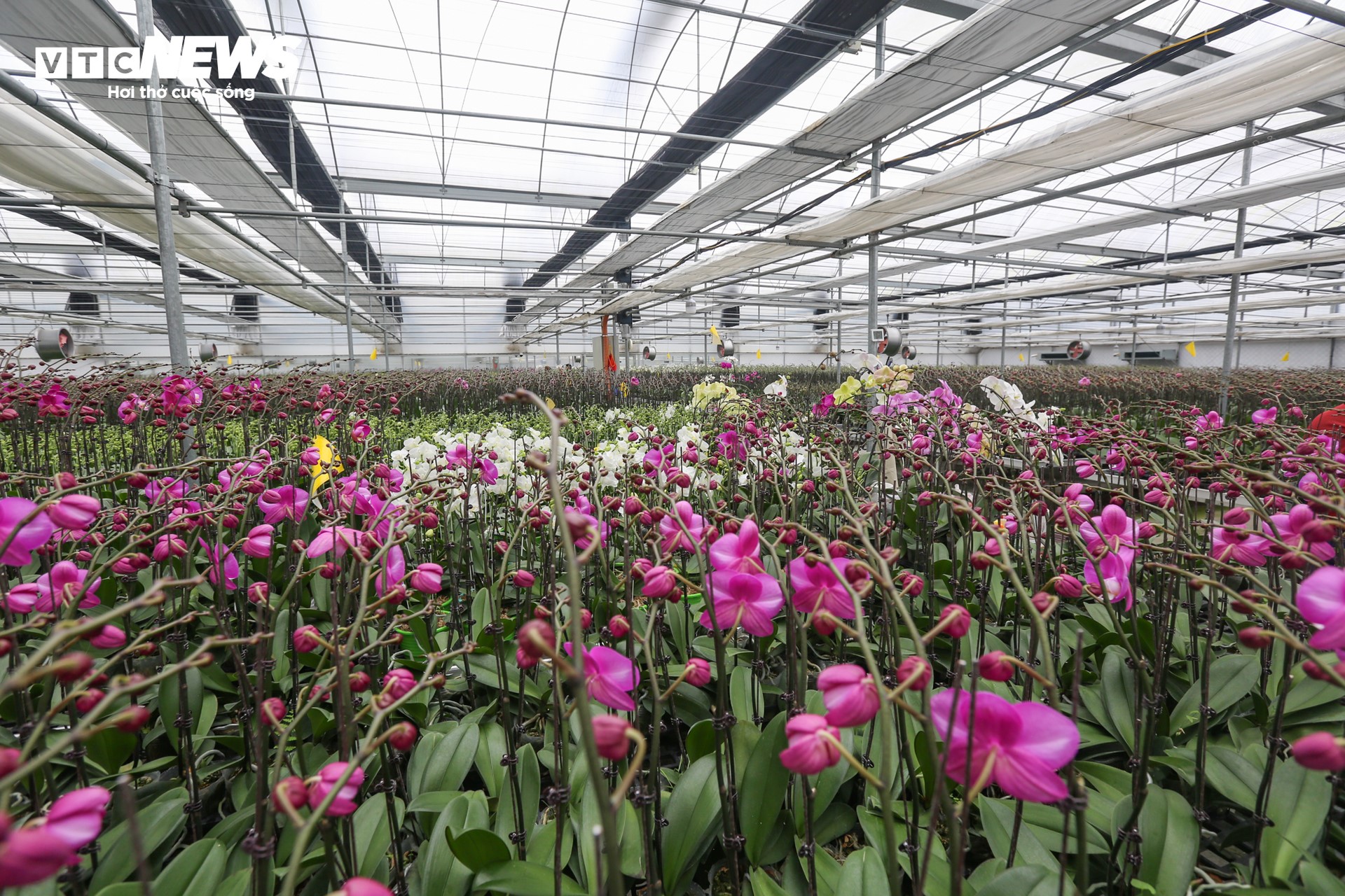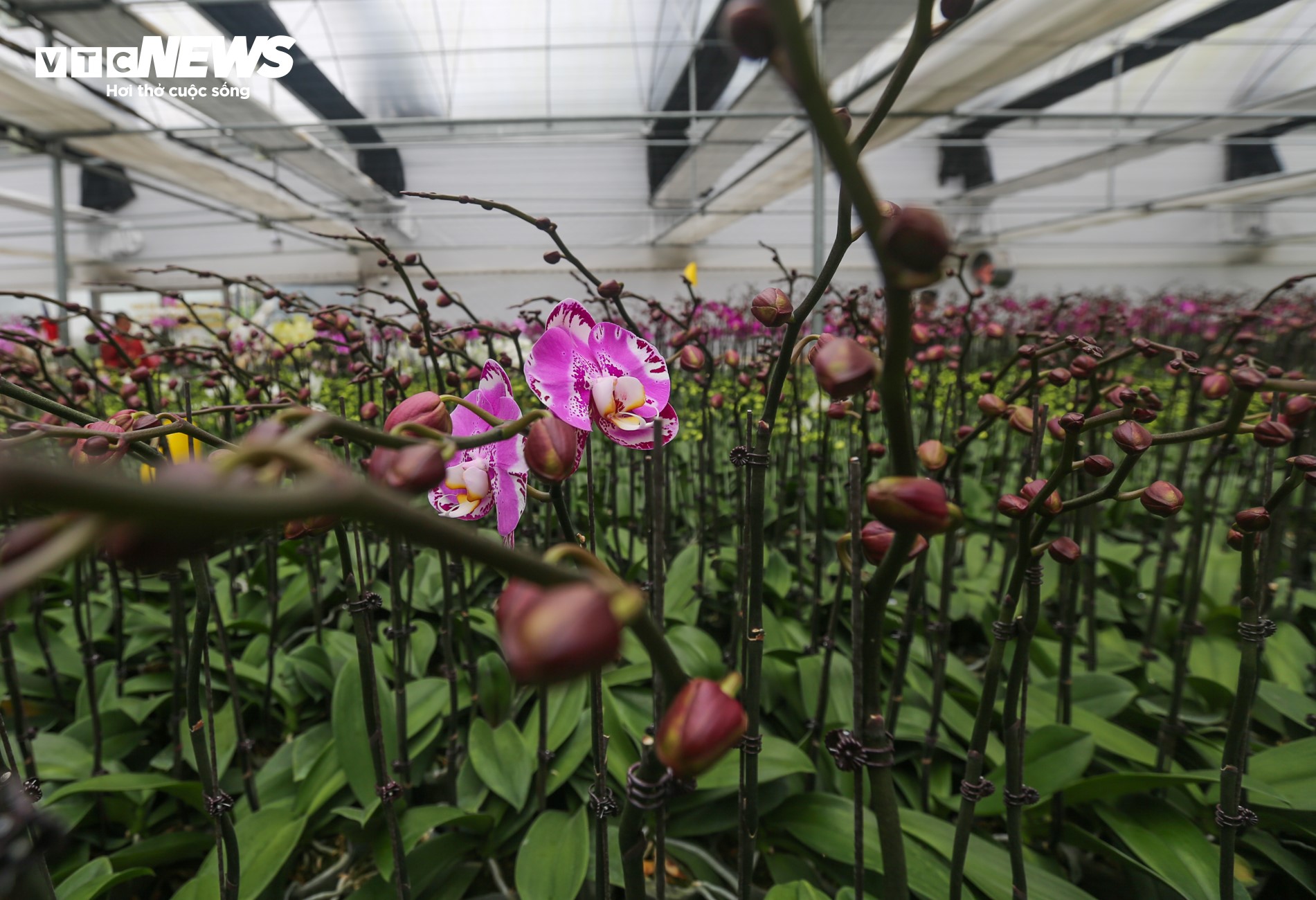 Nhờ điều chỉnh được độ ẩm nên người trồng có thể căn thời điểm kích ngồng cho hoa nở vào dịp Tết. |