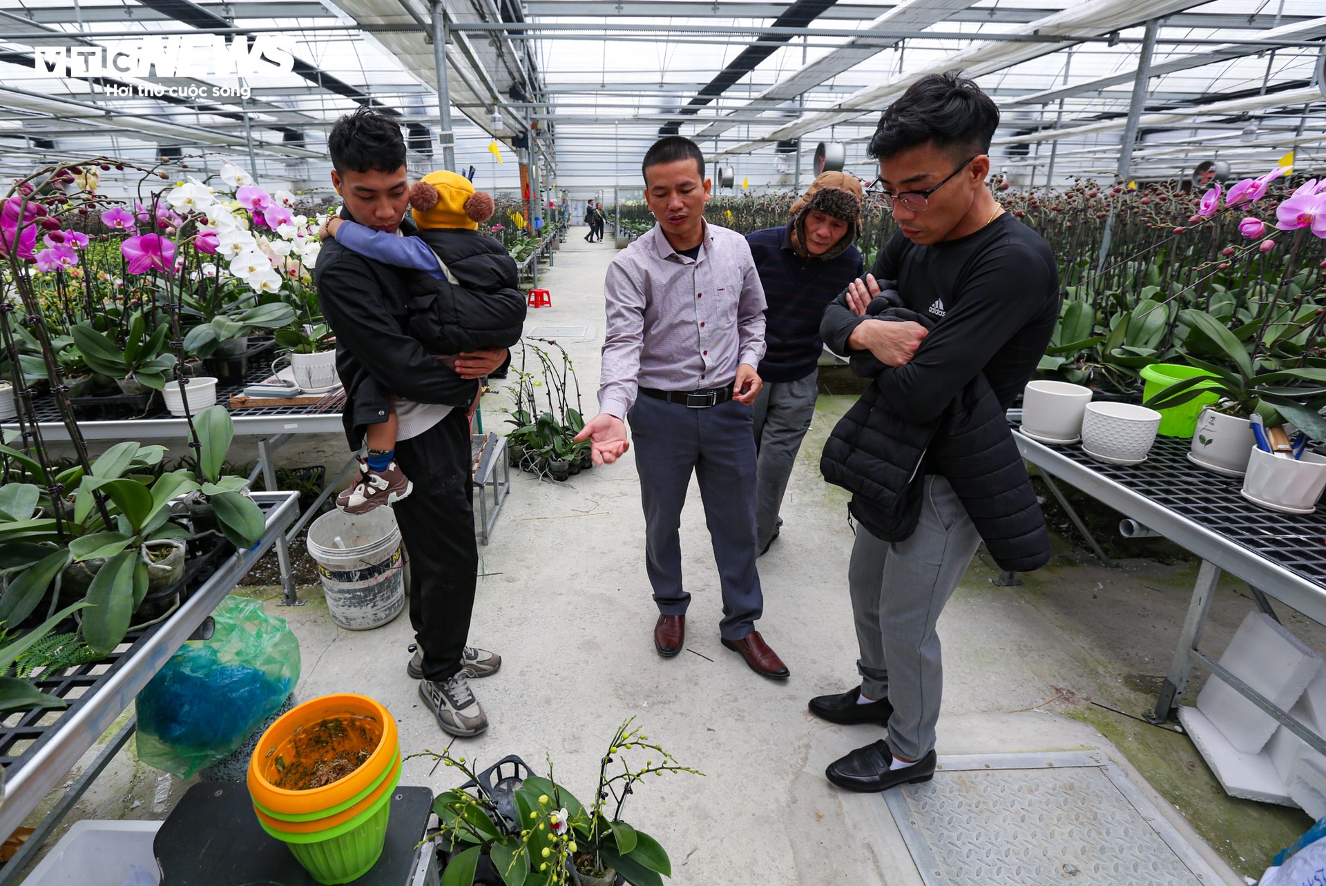 Nhiều du khách thích thú đến tham quan vườn lan và chọn cho mình những giỏ lan đẹp nhất. |