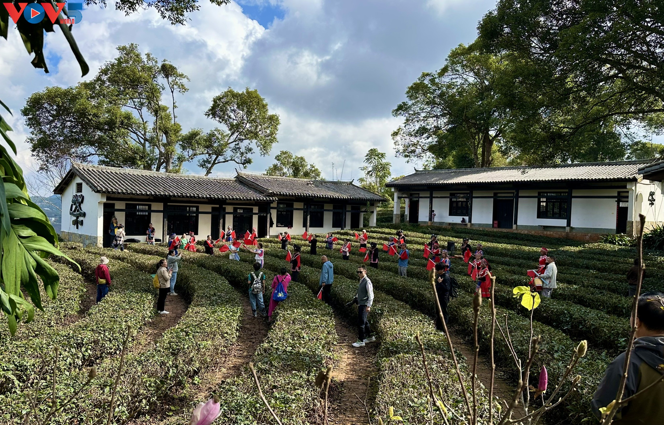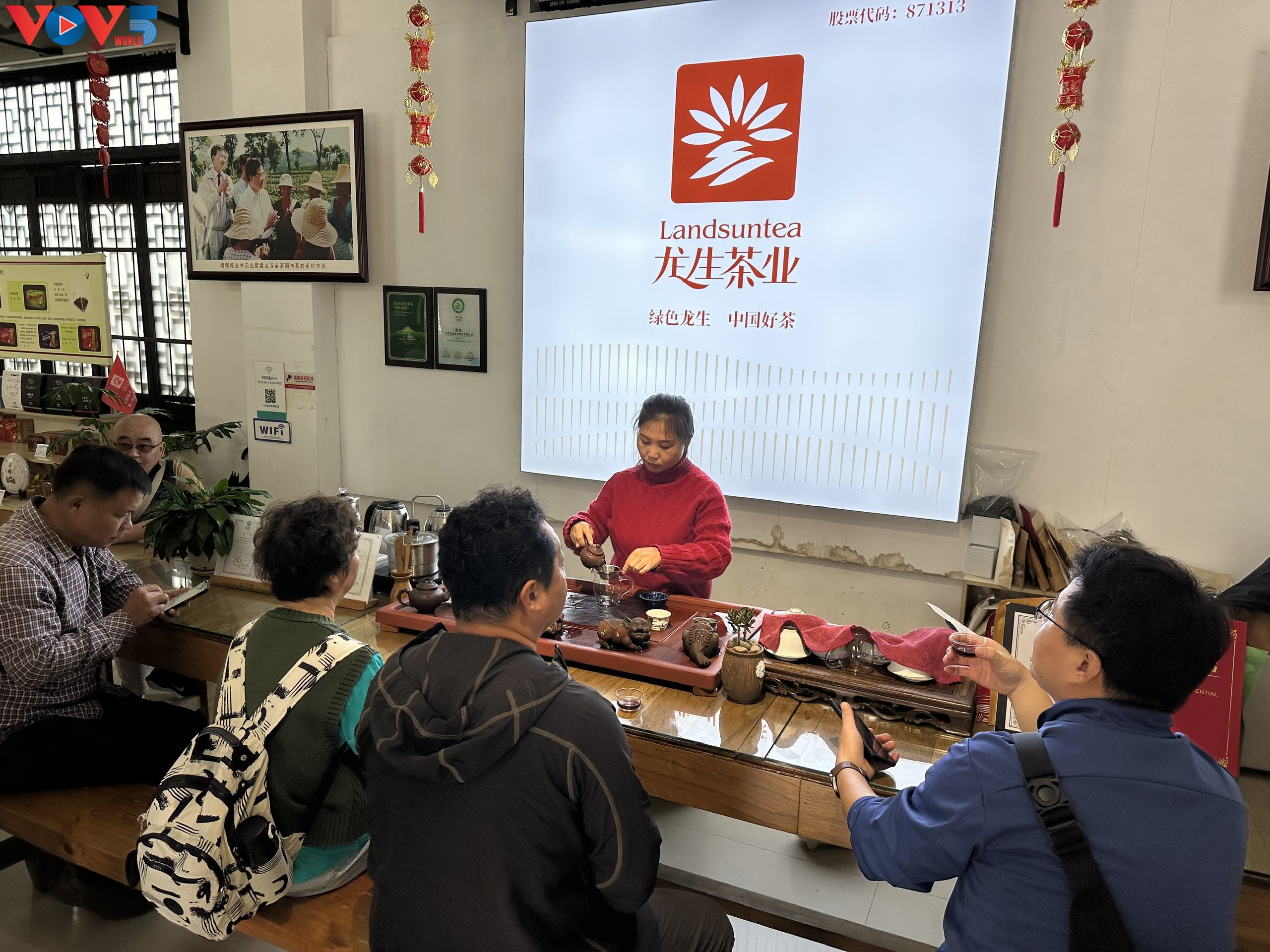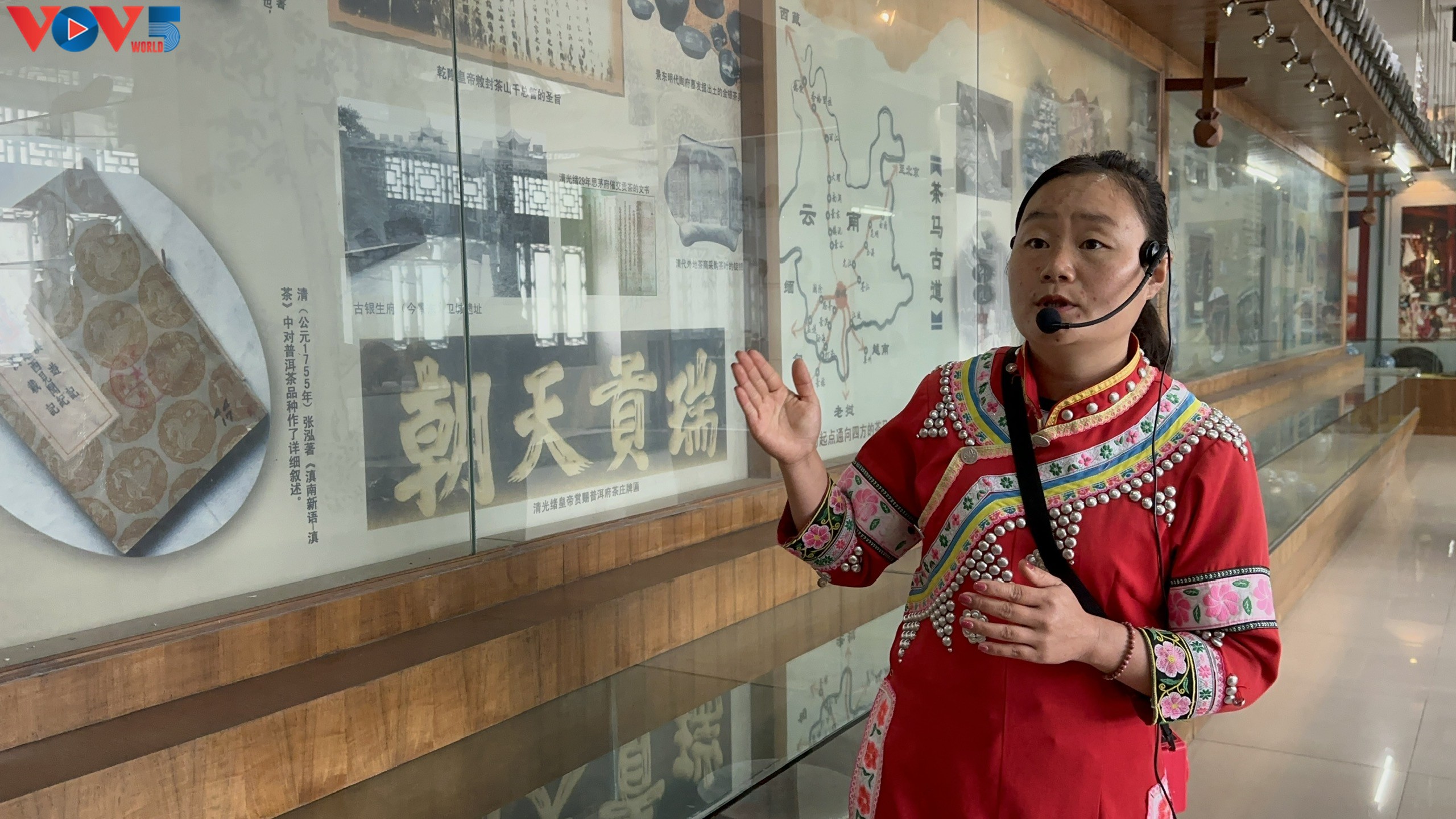 Hướng dẫn viên đang giới thiệu về lịch sử trà Phổ Nhĩ |