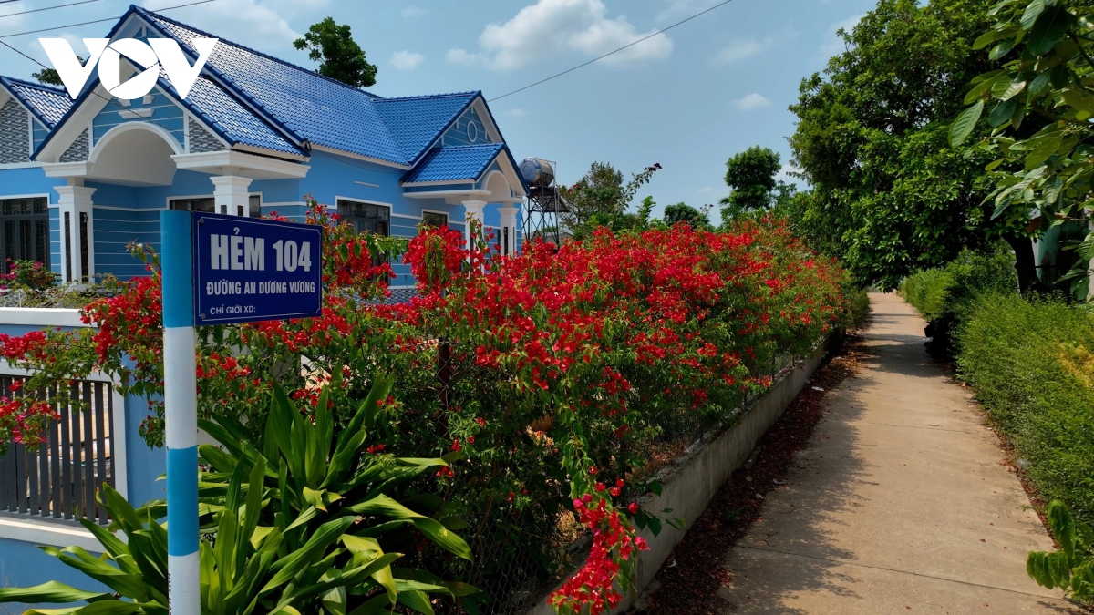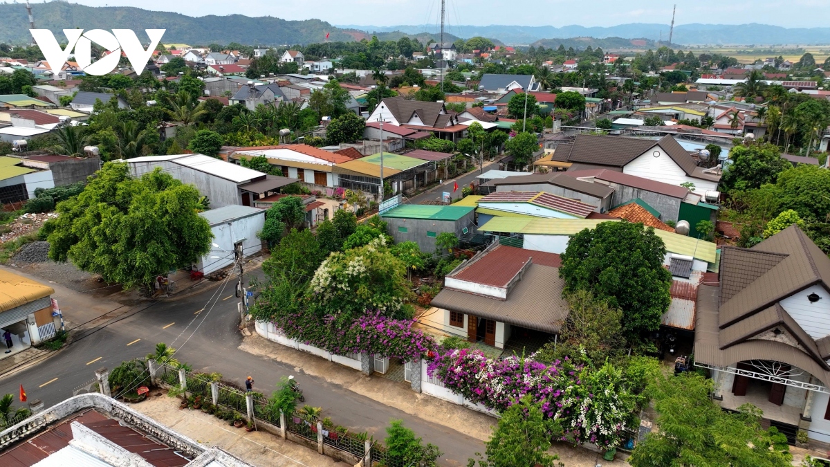 Là một vùng lúa lớn của Đắk Lắk, nhưng nhiều ngõ xóm của Buôn Trấp lại như một vùng hoa khiến lòng người xao xuyến. (ảnh Chân Lê)