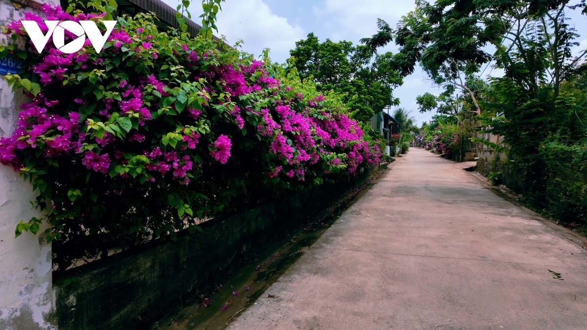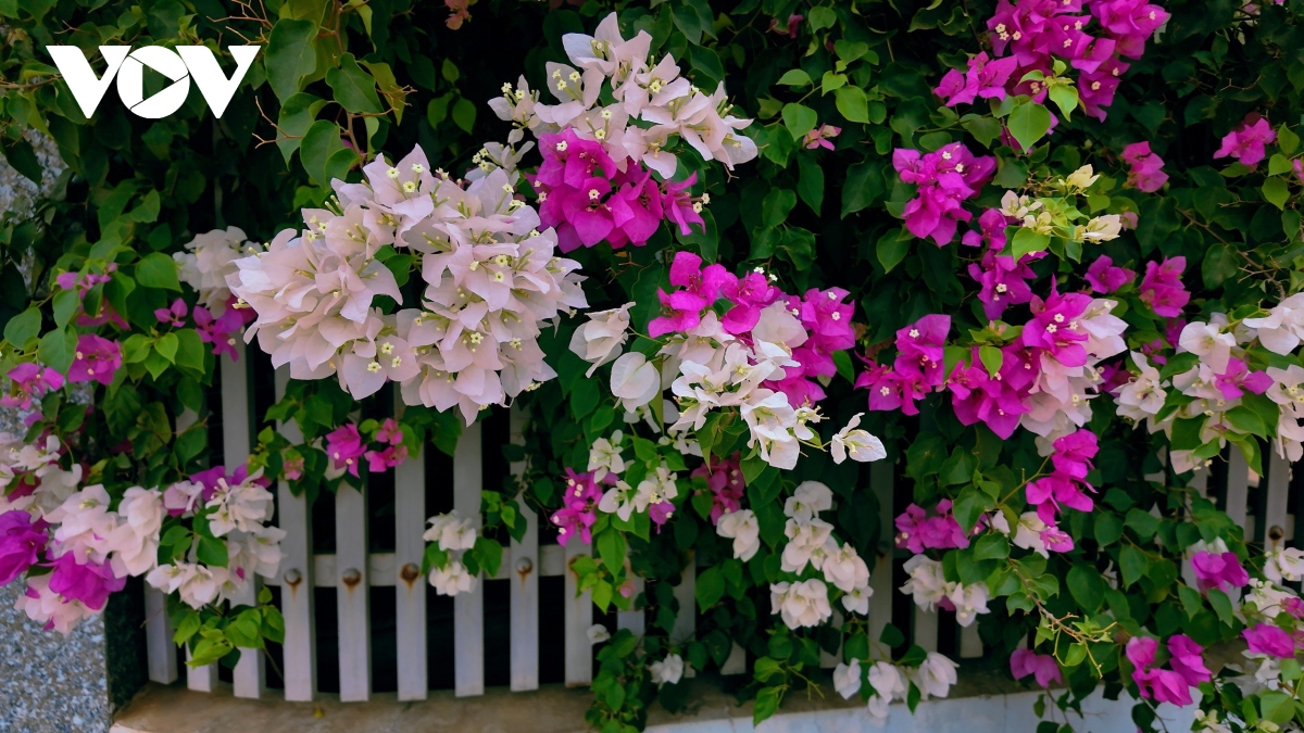 Ở một số phố-xóm, được tô điểm bằng cả hoa giấy và cây chè Tàu. (ảnh Chân Lê)