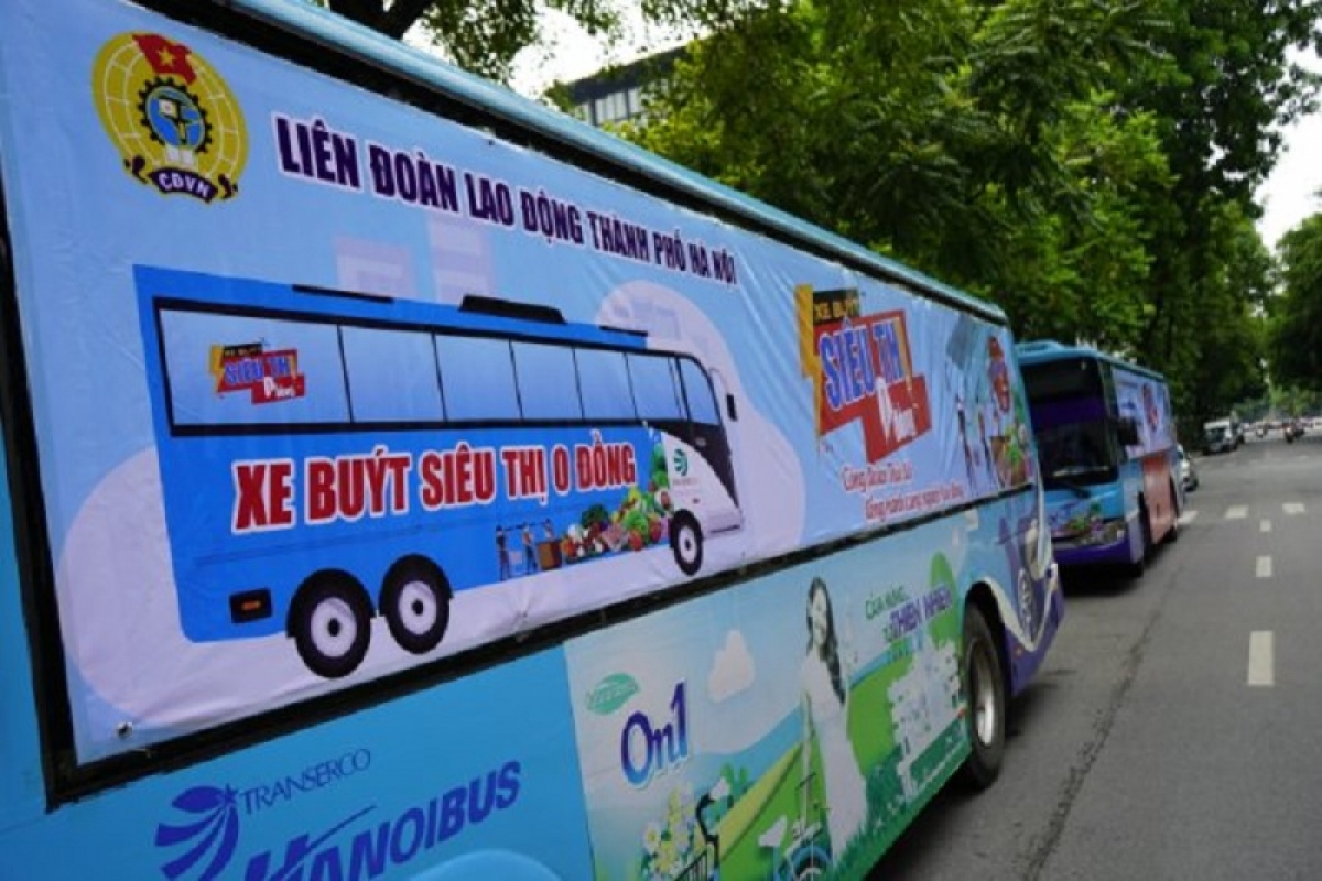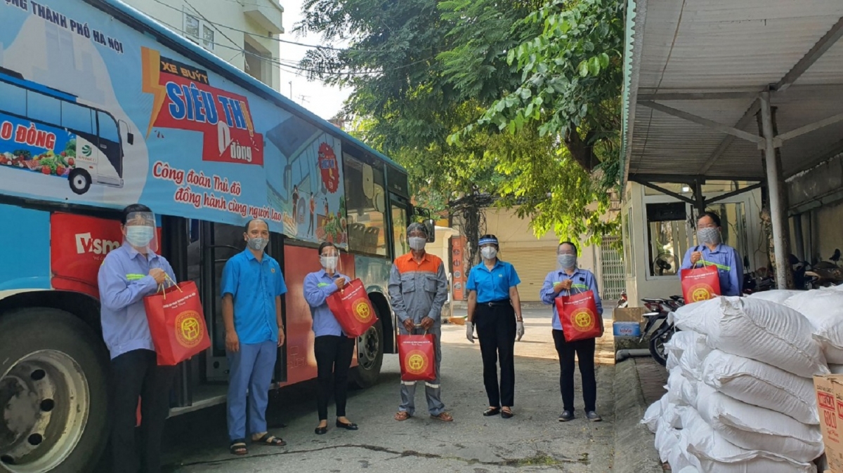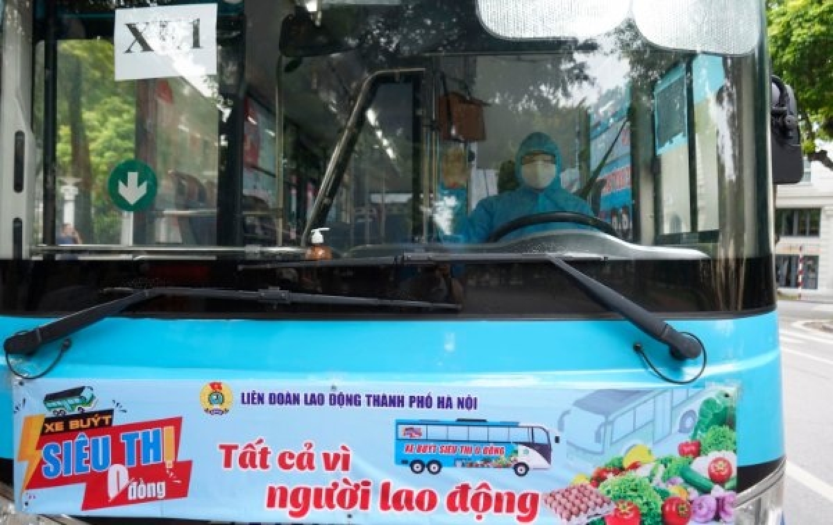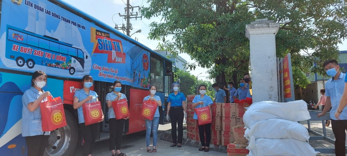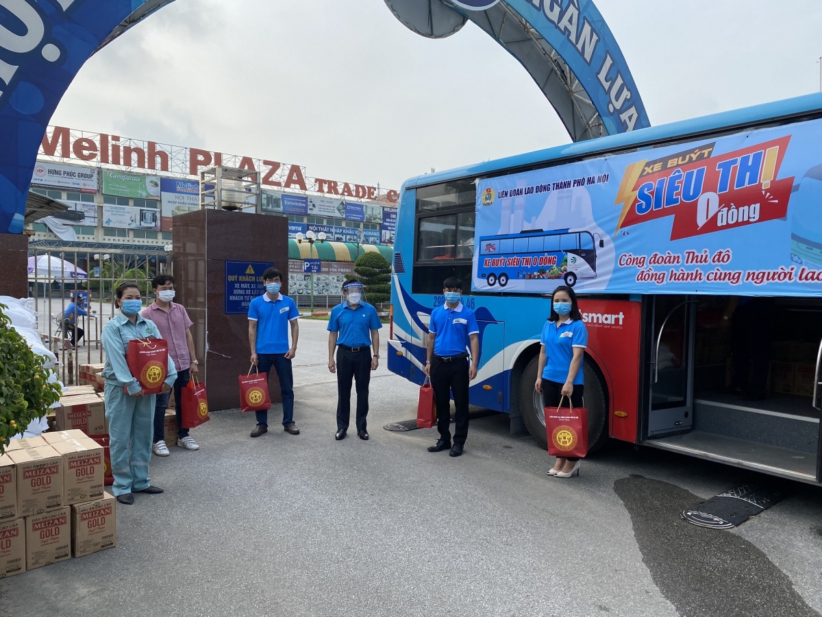 “Xe buýt siêu thị 0 đồng” do Liên đoàn Lao động thành phố Hà Nội tổ chức nhằm hướng đến các địa điểm công nhân lao động đang thực hiện cách ly tập trung, để kịp thời hỗ trợ nhu yếu phẩm theo nhu cầu của người lao động và hỗ trợ cho những lao động có hoàn cảnh khó khăn do ảnh hưởng của dịch COVID-19. |