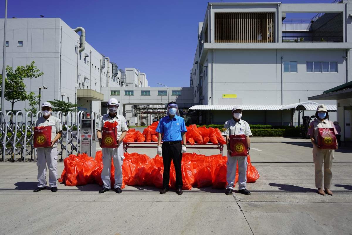 Phó Chủ tịch Liên đoàn Lao động thành phố Hà Nội Lê Đình Hùng đã trực tiếp trao 791 suất quà của tổ chức Công đoàn Thủ đô cho công nhân lao động có hoàn cảnh khó khăn của 49 doanh nghiệp đang ở trong khu phong tỏa do dịch COVID-19 trên địa bàn huyện Hoài Đức, Thạch Thất và trong khu công nghiệp Thạch Thất – Quốc Oai. Mỗi suất quà trị giá 200.000 đồng, bao gồm gạo, dầu ăn, nước mắm, mì chính… |