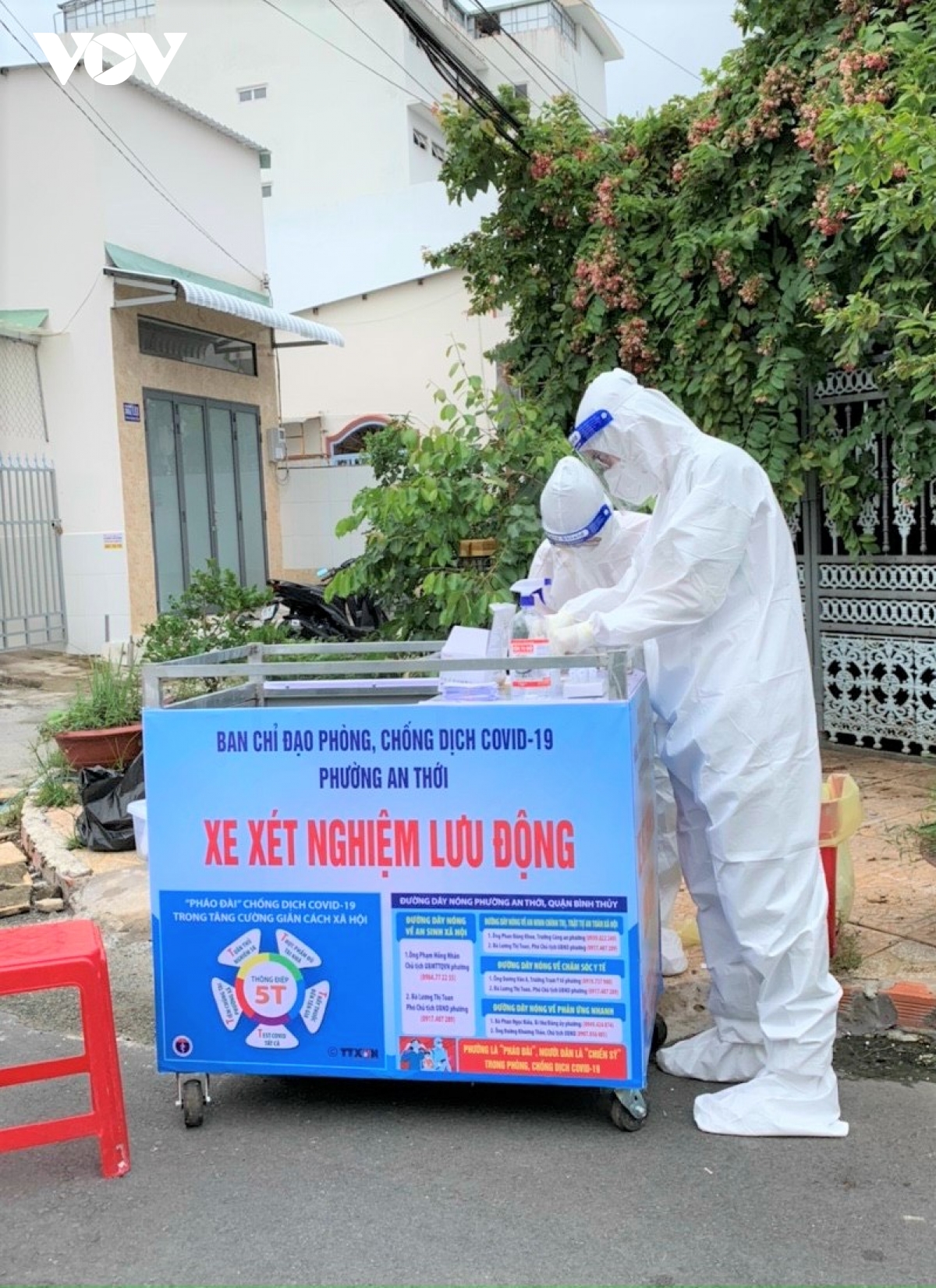 Để thuận tiện trong việc lấy mẫu tại nhà, quận Bình Thủy, TP Cần Thơ đã lắp ráp 32 chiếc xe đẩy tự chế, thuận tiện di chuyển, tránh tập trung đông người, an toàn cho người dân. Mỗi xe xét nghiệm lưu động tự chế có từ 3 - 4 nhân viên y tế, tình nguyện viên, cán bộ công an và dân quân đẩy đi len lỏi từng con phố, ngõ hẻm. |