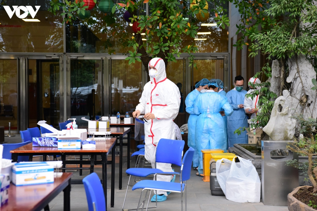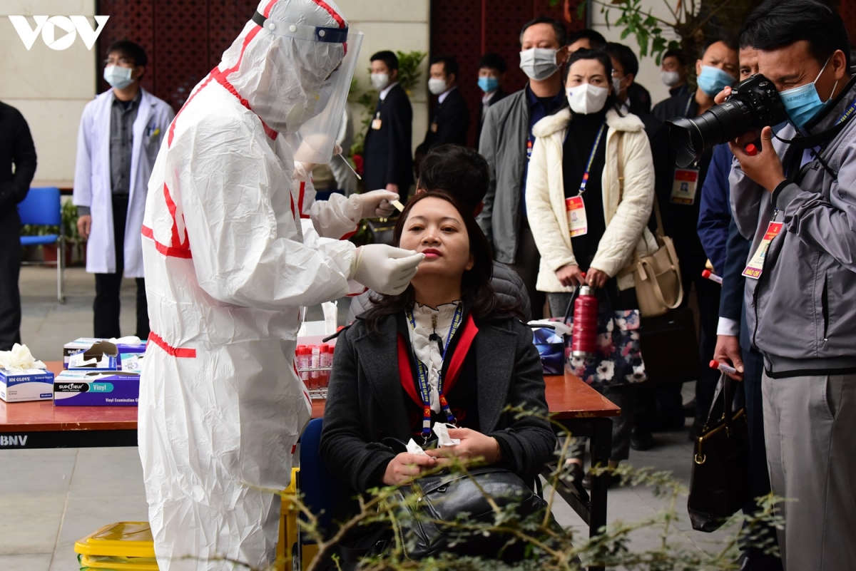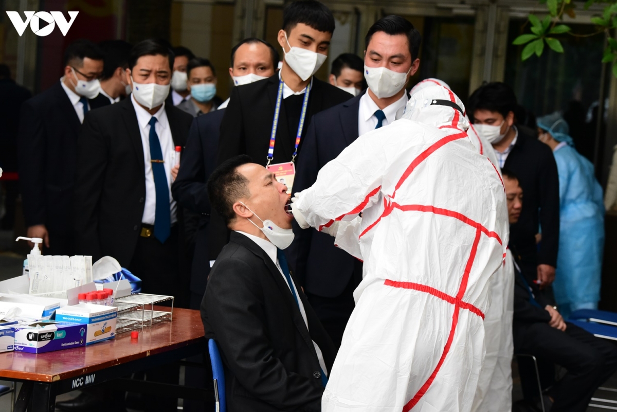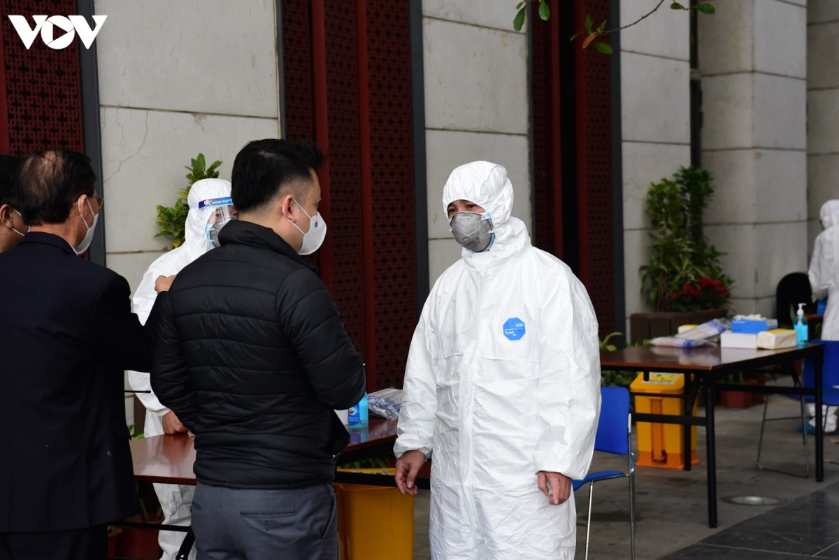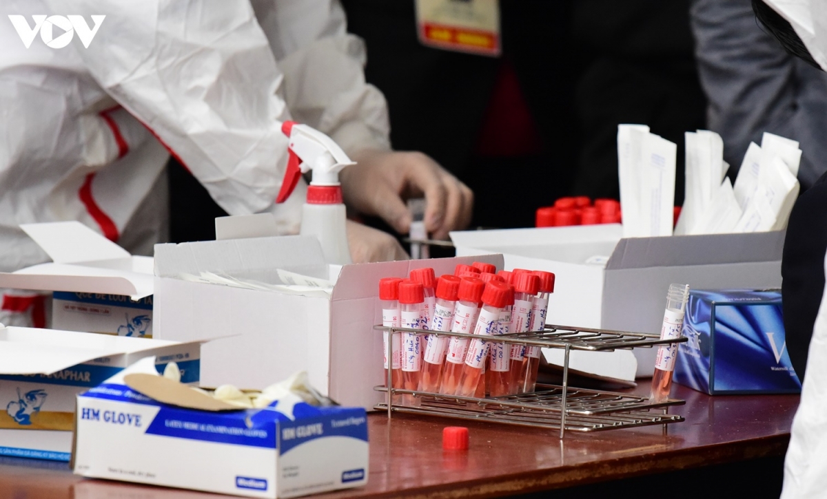 Trước diễn biến mới phức tạp của dịch Covid-19, các y bác sĩ từ bệnh viện Phổi Trung ương và bệnh viện E (Hà Nội) đã được điều động xuống Trung tâm Hội nghị Quốc gia để tăng cường cho công tác xét nghiệm của Đại hội.