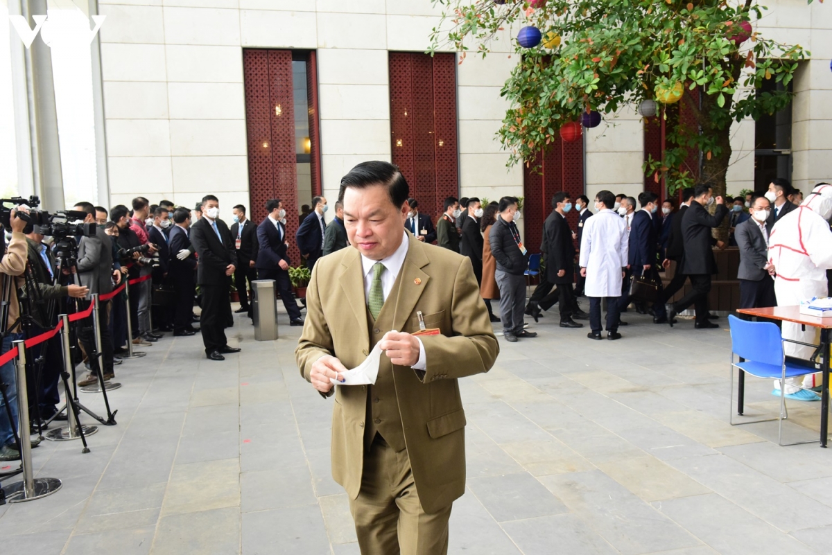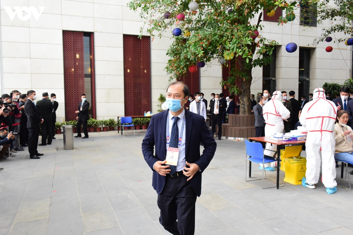 Giám đốc Trung tâm Báo chí phục vụ Đại hội Đảng lần thứ XIII, Phó Ban Tuyên giáo Trung ương Lê Mạnh Hùng sau khi hoàn thành phần lấy mẫu xét nghiệm Covid-19.