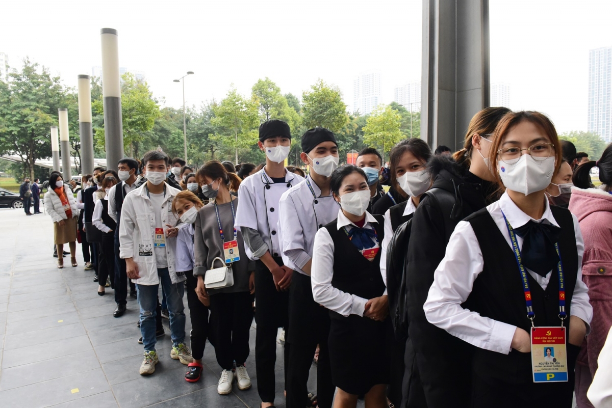 Ngoài ban tổ chức, nhà báo, nhân viên an ninh, tất cả những người phục vụ như đầu bếp, dọn bàn, nhân viên lễ tân... tại Đại hội Đảng lần thứ XIII cũng đều phải trải qua xét nghiệm Covid-19.