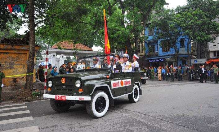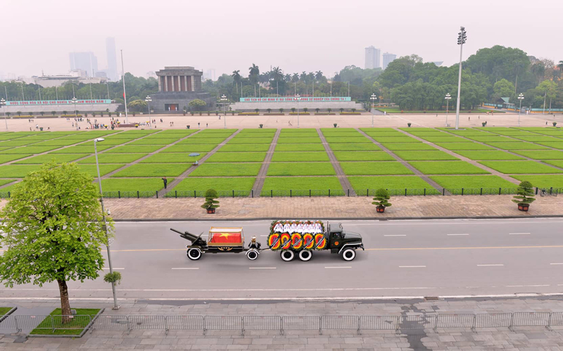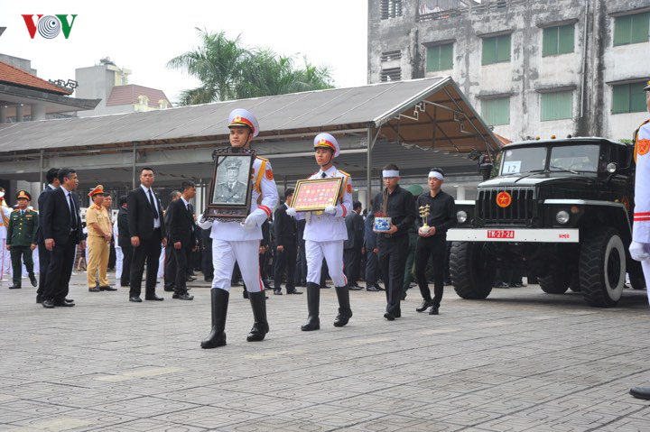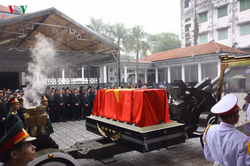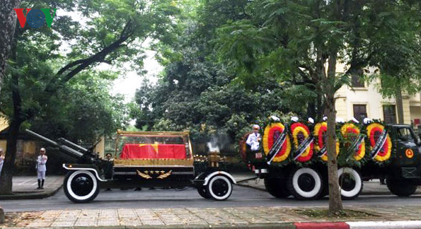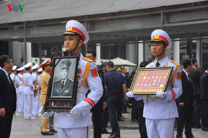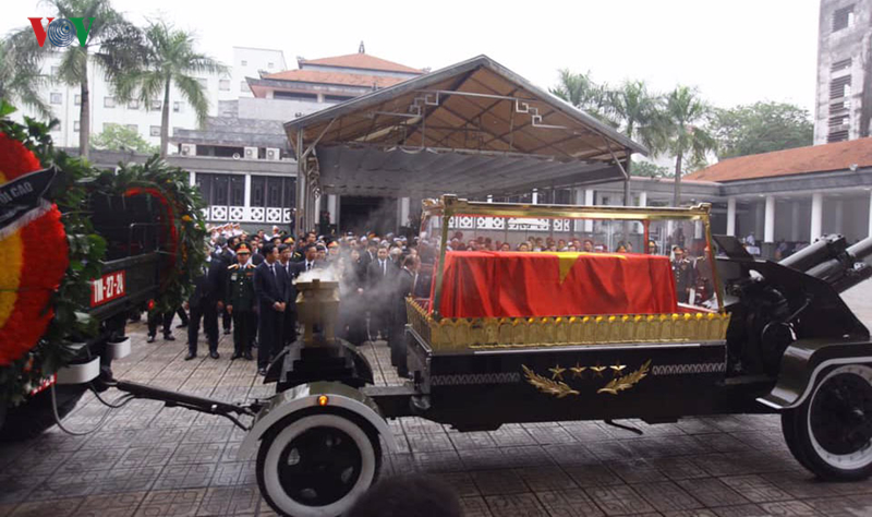 Cỗ linh xa chở linh cữu Đại tướng Lê Đức Anh bắt đầu lăn bánh rời khỏi Nhà tang lễ Quốc gia.