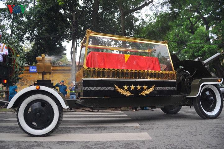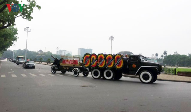 Cỗ linh xa chở linh cữu Đại tướng Lê Đức Anh chuẩn bị rời bánh.