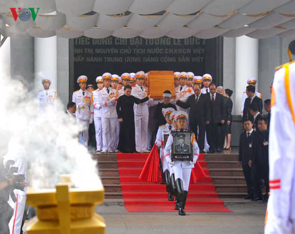 Tiếp đó, lãnh đạo Đảng, Nhà nước, Quốc hội, Chính phủ, Mặt trận Tổ quốc và các vị nguyên lãnh đạo Đảng, Nhà nước, các đoàn đại diện các tổ chức quốc tế đi quanh linh cữu nguyên Chủ tịch nước Lê Đức Anh để tiễn biệt ông lần cuối.