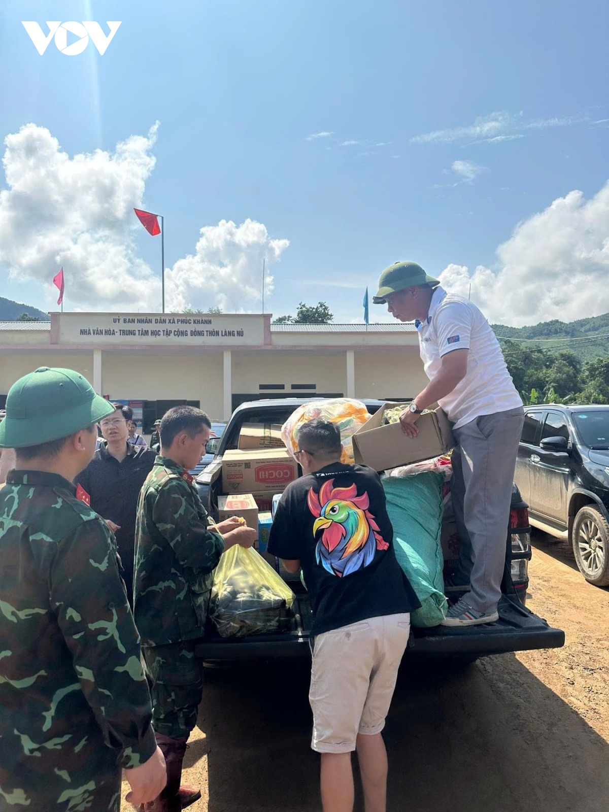 (VOV5) -Người dân các vùng lũ lụt đã được nhận lương thực, thực phẩm, áo phao, đèn pin, chổi, cuốc, xẻng, xoong, nồi, quần áo, chăn màn, thuốc men... với giá trị lên tới hàng trăm triệu đồng.