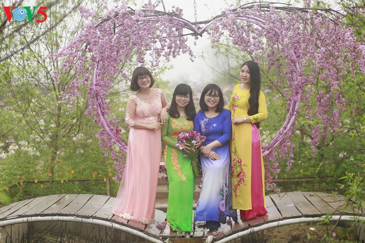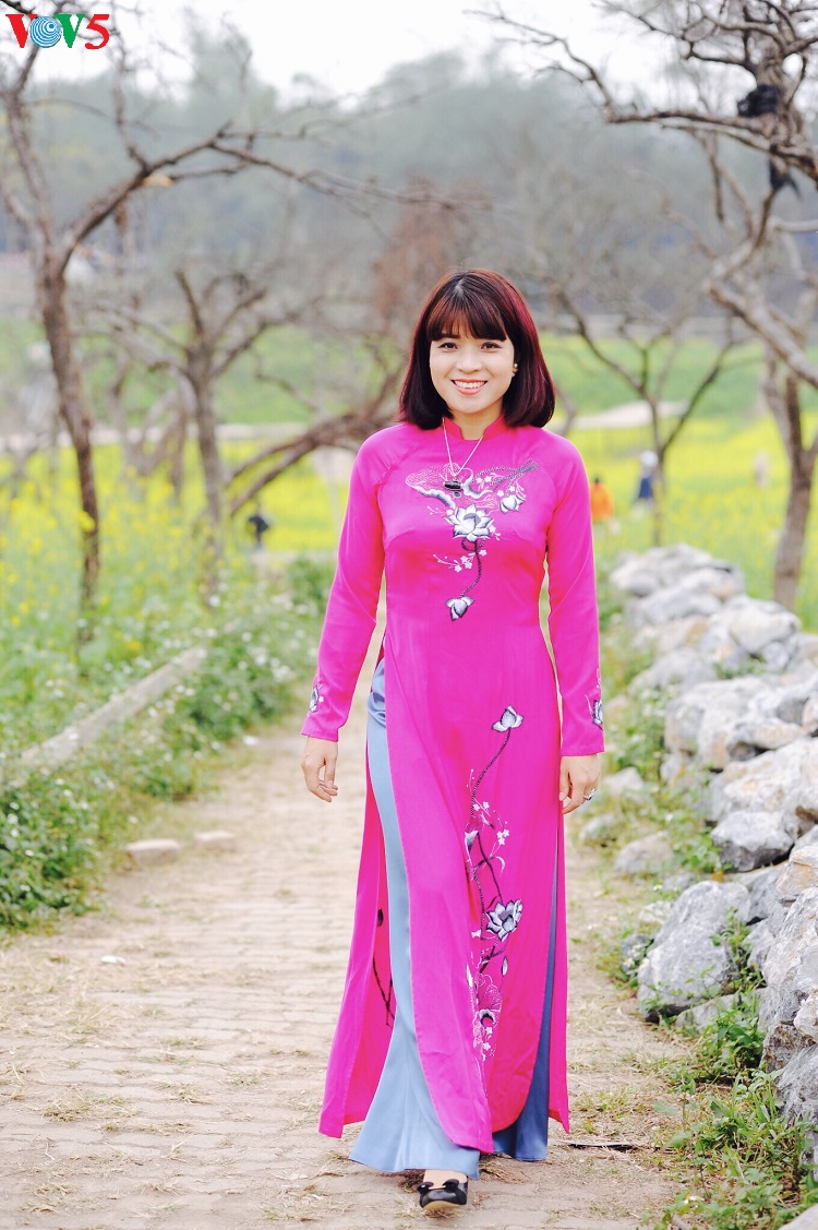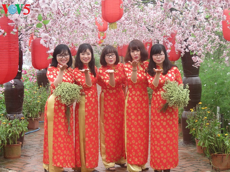 (VOV5) - Áo dài ngày càng được phái nữ chọn lựa để làm duyên trước ống kính, lưu lại những kỷ niệm đẹp khi Tết đến Xuân về. Những tà áo dài thướt tha, đủ màu sắc, từ truyền thống đến cách tân, càng làm tăng thêm vẻ duyên dáng cho phụ nữ Việt.