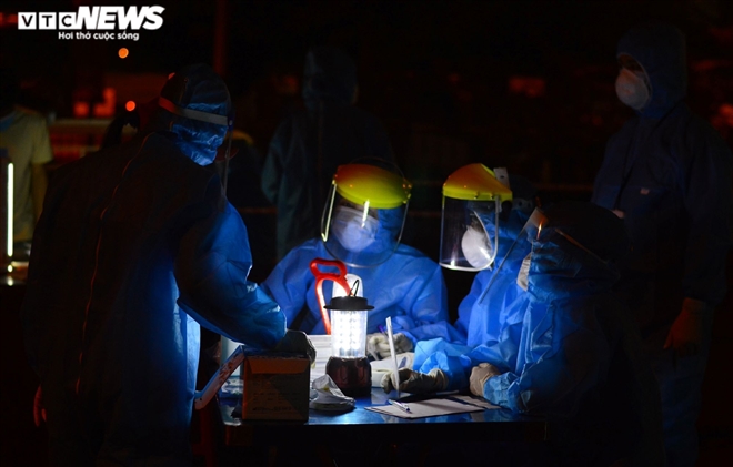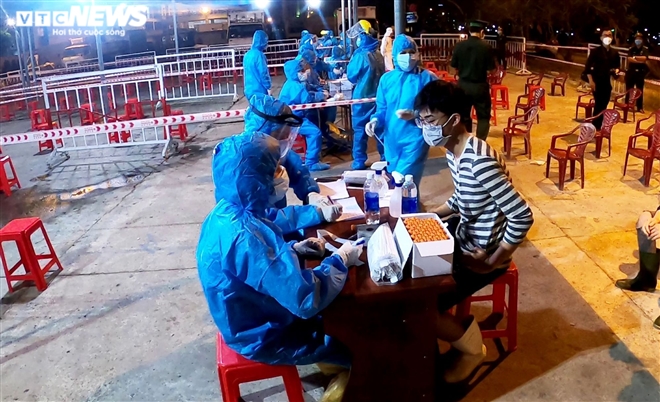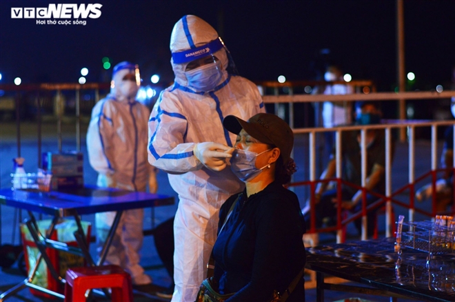 Đêm 14/5, Trung tâm Y tế quận Sơn Trà phối hợp Ban Quản lý Âu thuyền và Cảng cá Thọ Quang (Đà Nẵng) lấy mẫu xét nghiệm xuyên đêm cho hơn 2.500 tiểu thương, ngư dân, người lao động làm việc tại cảng cá Thọ Quang và chợ đầu mối thủy sản.