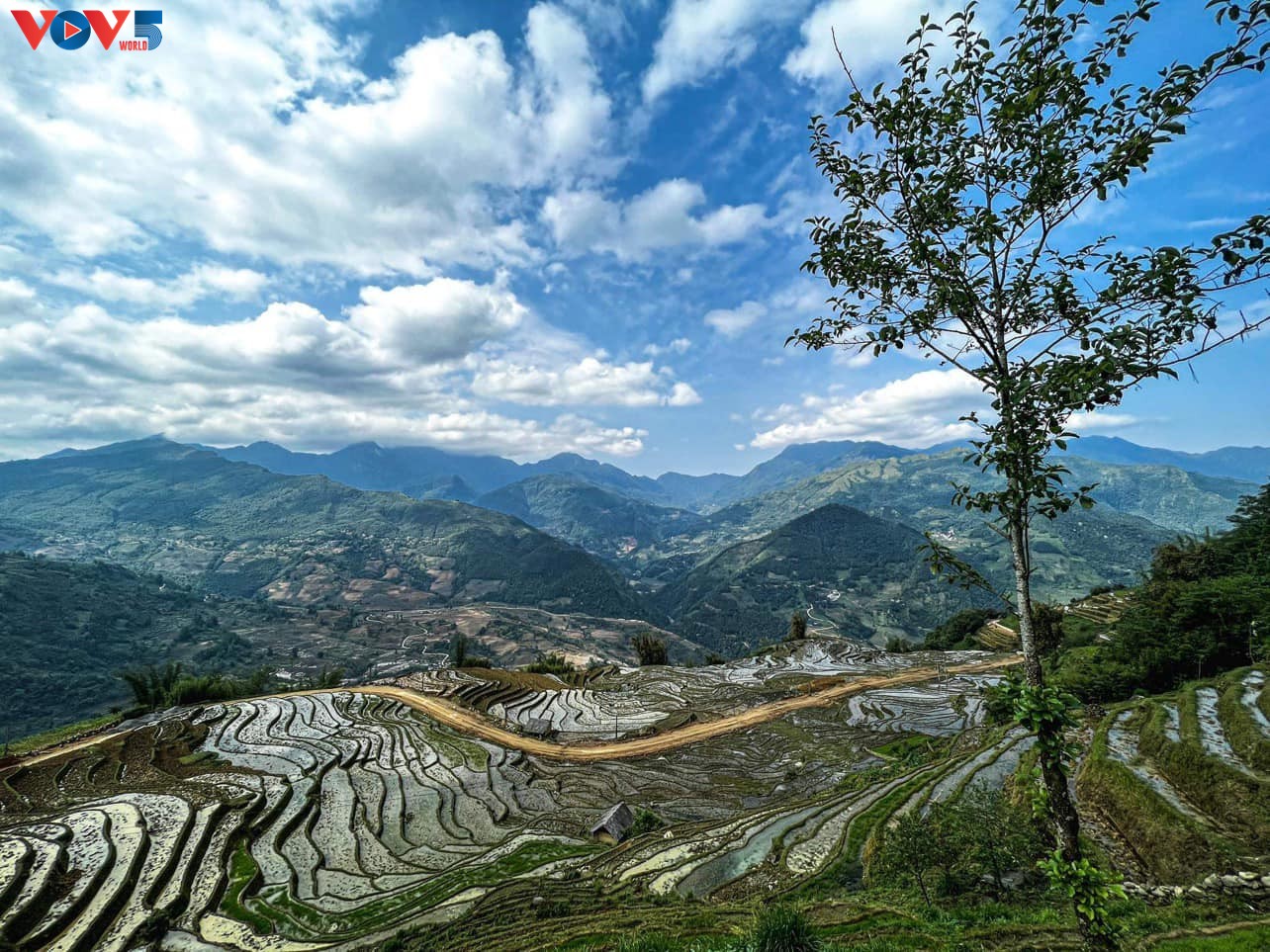 ![]() Ruộng bậc thang nơi đây không chỉ đẹp khi ngả màu vàng rực của lúa chín vào mùa thu tháng 8, hay phủ màu xanh mướt của lúa non vào tháng 7 mà còn là đẹp đến nao lòng khi thời tiết bắt đầu bước vào mùa hạ.
