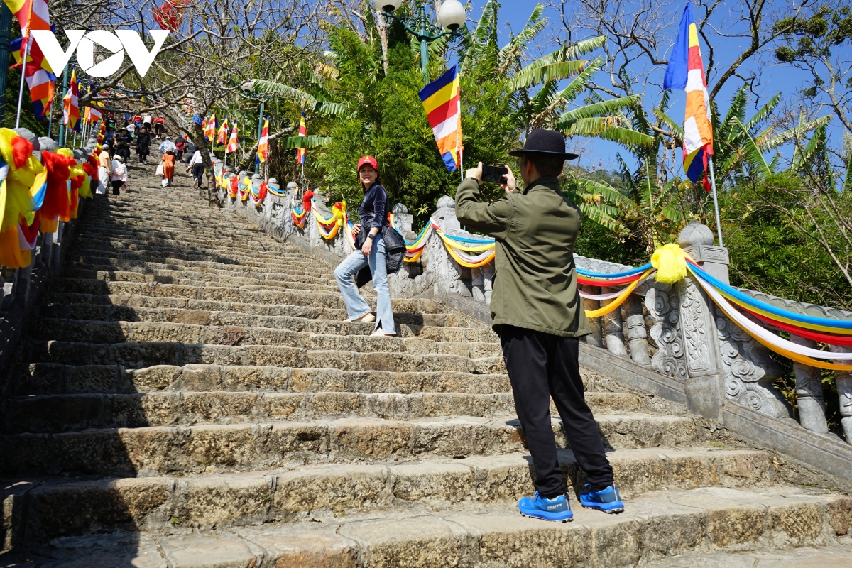 Chặng đường lên non thiêng Yên Tử là quãng đường thử thách sự kiên trì, bền bỉ của Phật tử và du khách khi vượt qua hàng nghìn bậc đá với nhiều đoạn cheo leo, gập gềnh men theo sườn núi. |
