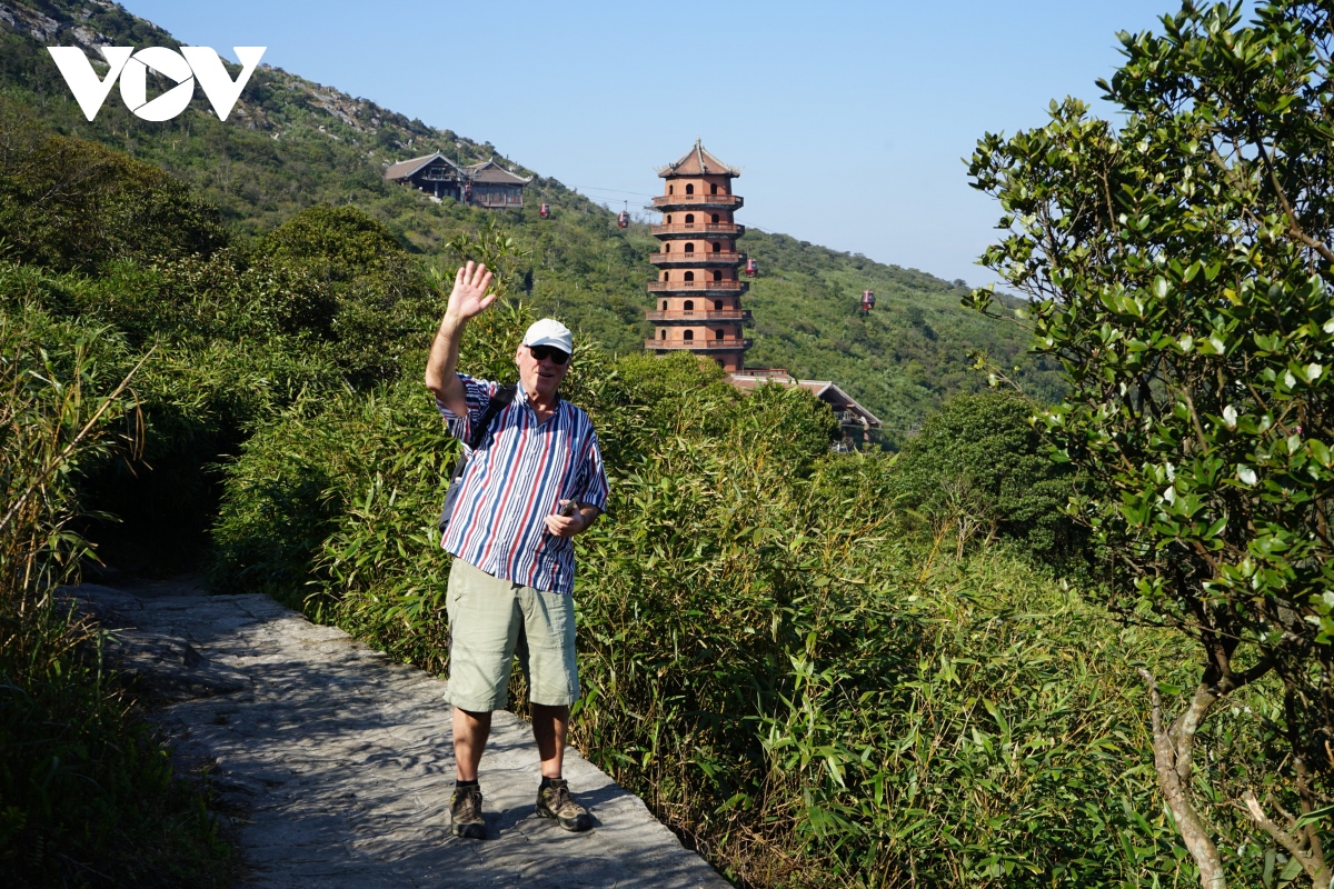 Nhiều du khách quốc tế chia sẻ niềm vui vì được trải nghiệm cung đường ấn tượng lên non thiêng Yên Tử. |