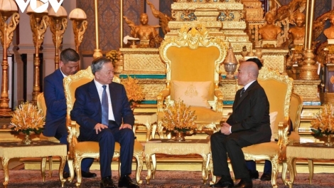 (VOV5) -Chủ tịch nước Tô Lâm dẫn đầu Đoàn đại biểu cấp cao nước ta thăm cấp Nhà nước tới Vương quốc Campuchia từ ngày 12-13/7 theo lời mời của Quốc vương Campuchia.