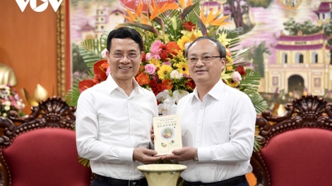 Bộ trưởng Nguyễn Mạnh Hùng và lãnh đạo nhiều bộ, ngành thăm và chúc mừng VOV
