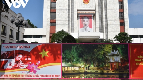 (VOV5) -Nhiều tuyến phố Thủ đô được trang hoàng rực rỡ cờ hoa, áp phích, băng rôn chào mừng 134 năm ngày sinh của Bác Hồ kính yêu (19/5/1890 - 19/5/2024).