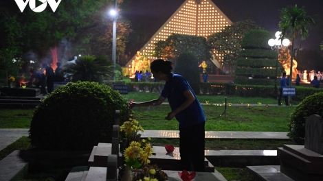 (VOV5) - Tối 4/5, tại Nghĩa trang liệt sỹ A1, thành phố Điện Biên Phủ, Tỉnh đoàn Điện Biên tổ chức Lễ dâng hương, thắp nến tri ân các Anh hùng liệt sỹ.