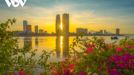 (VOV5) -Đường Bạch Đằng ven sông Hàn, hoa giáng hương và hoa giấy đen xen đua nhau khoe sắc