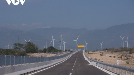 (VOV5) -Tuyến cao tốc Cam Lâm - Vĩnh Hảo tổng mức đầu tư gần 9.000 tỷ đồng đã cơ bản hoàn thiện, sớm hơn một tháng so với kế hoạch, sẵn sàng thông xe vào dịp 30/4. Đặc biệt, tuyến đường có những đoạn chạy băng qua những cánh đồng điện gió, điện mặt trời ở Ninh Thuận, Bình Thuận đẹp mê đắm lòng người...