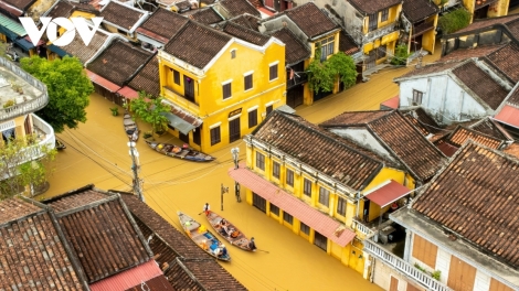 (VOV5) - Đi thuyền ngắm phố cổ Hội An mùa mưa lũ giúp du khách có nhiều trải nghiệm khám phá mới.
