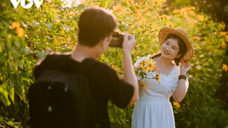 (VOV5) - Thời điểm này, cả một đoạn đê dài 700m bên chân cầu Phú Tảo (TP. Hải Dương, tỉnh Hải Dương) nở rộ sắc vàng rực rỡ của hoa dã quỳ, thu hút nhiều bạn trẻ tới chụp ảnh.