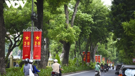 Đường phố Hà Nội rực rỡ sắc đỏ chào mừng ngày Quốc khánh 2/9