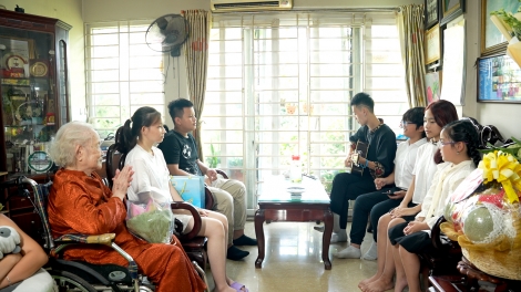 Các bạn nhỏ thăm hỏi mẹ của anh hùng liệt sỹ Đặng Thùy Trâm